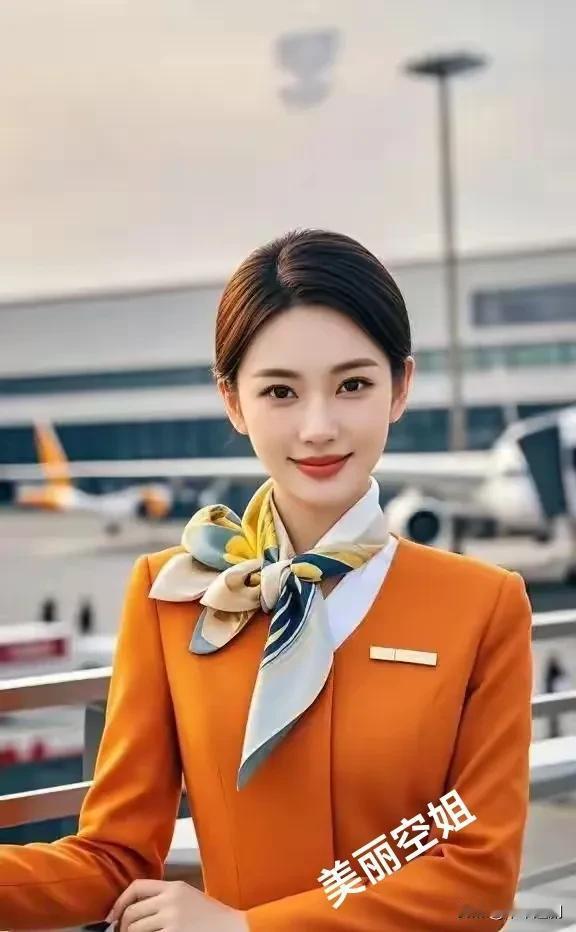 机场的喧嚣里,橙色制服衬出干练,丝巾点缀着专业与优雅,她以微笑开启每一段云端旅程,是机场里一道靓丽的空乘风景线。