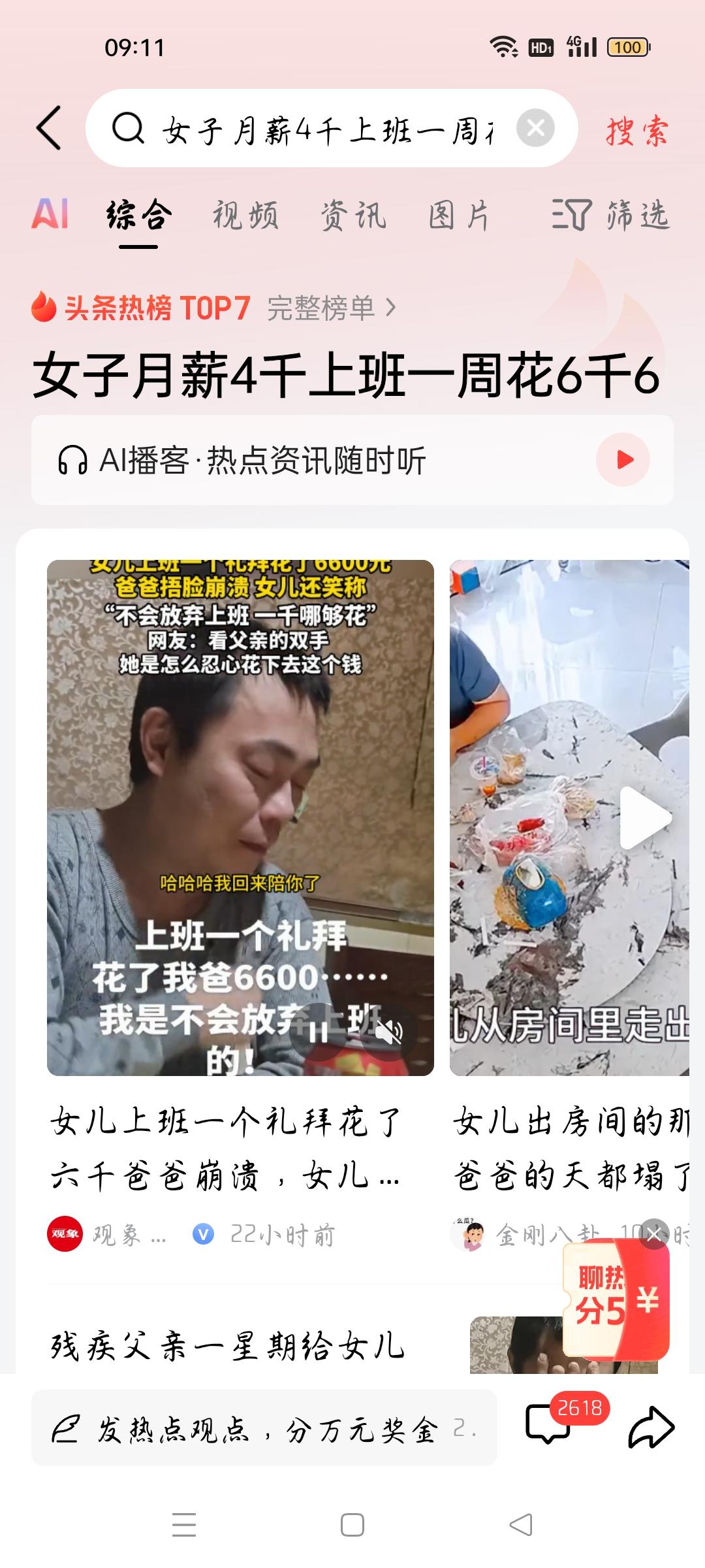 女子月薪4千上班一周花6千6,我想说 据观象新闻报道,女儿上班一周花了父亲660