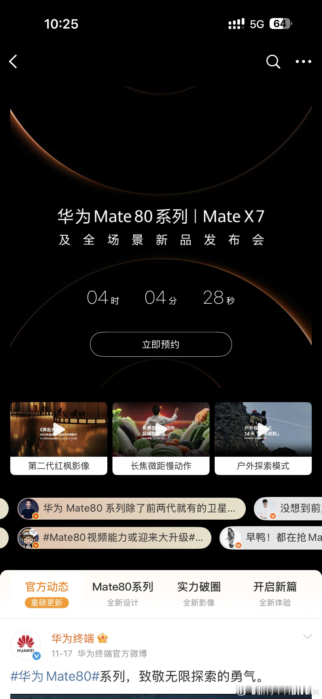 今天一整天都会是华为Mate 80的时间下午记得一起看发布会