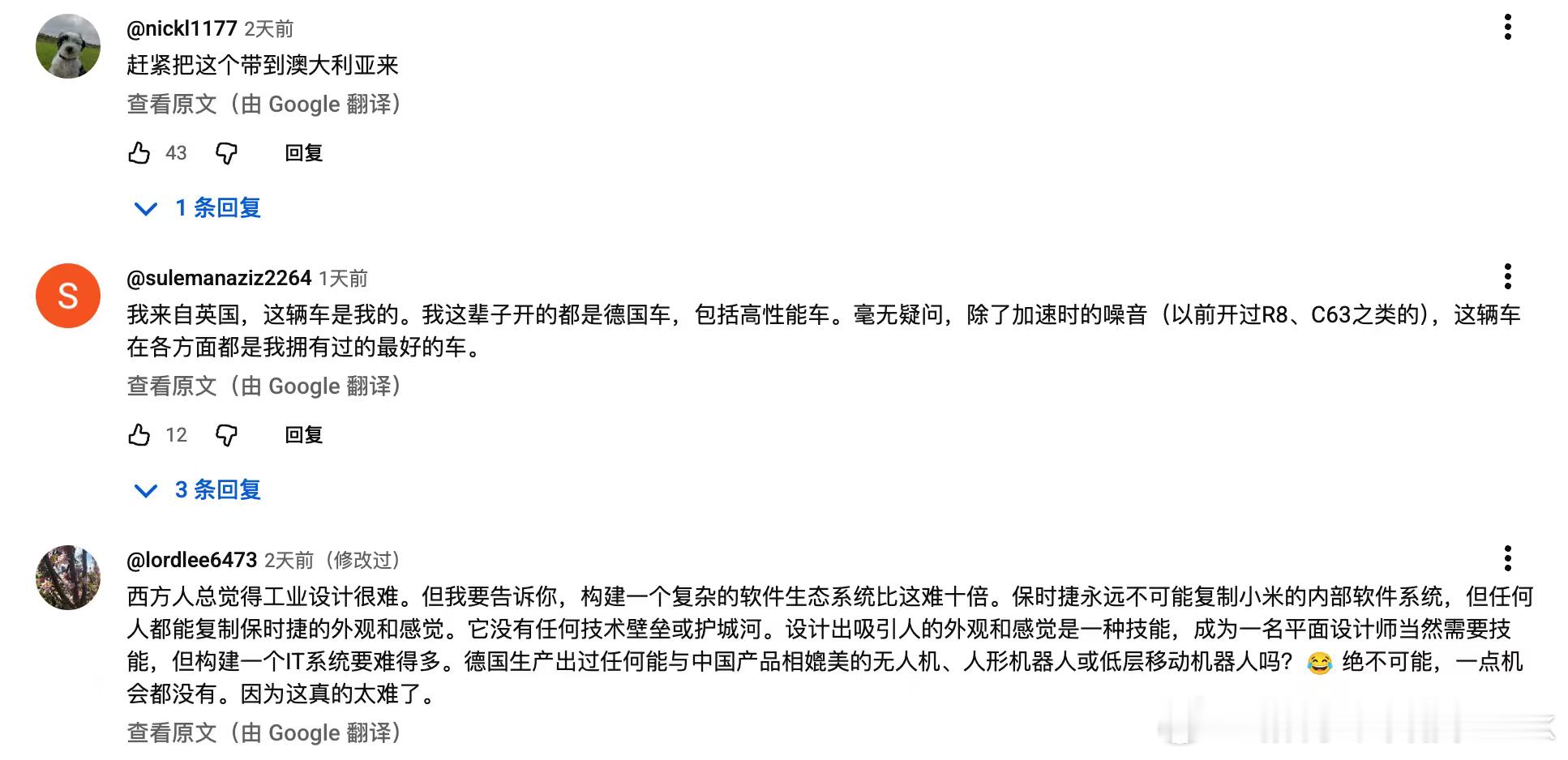 对于小米汽车还可以看看国外专业媒体,以及没有立场的专业人士点评。“当你对比,会发现小米YU7在几乎所有方面都胜过了Model Y。”前通用汽车副总裁、现Caresoft总裁给出的这个评价确实相当之高,要知道特斯拉在电动智能汽车领域有着标杆意义的存在,同时作为资深业内人士能做出这样的评价,足以证明小米YU7的综合能力确实够强。EVcom点评小米YU7也是给出了超高的评价:“这可能是我驾驶过最完美的电动车”、“小米的优势不在于外观,而在于技术、创新和用户体验”作为体验测评过非常多电动智能汽车的测评人,可以说一针见血的点出了小米汽车真正火的原因所在。彭博社则是在全球行业的角度对小米汽车进行了点评,“小米立志打造比特斯拉更好的车,并且成功了”、“关税可以为他们争取时间,但从长远来看,并不能拯救任何人。” 小米汽车的成功确实证明了中国汽车工业在新能源领域实现了毫无疑问的弯道超车,用海外关税阻止中国新能源汽车出海速度,但从产品力和创新力来说,很难挡得住这个领域中国汽车的强大崛起。说来也奇怪,专业媒体把车拆得干干净净之后夸用料说是好车,国外媒体废了老劲去体验YU7之后,也是给出了非常高的评价。可以发现这些点评都是实打实开过之后的真实点评和夸赞,没有国内一部分人 阴阳怪气的酸点评、云点评,情绪输出,有的只是对产品本身的真实高度肯定。非常多的用户都很期待小米汽车进入自己国家的市场,小米汽车这样够强的产品力出海,势在必行。希望国内舆论环境,能够给小米汽车这样有实力走向全球的车企多一些鼓励少一些恶意、攻击和诋毁,至少能客观的去给小米汽车一个正确的评论,销量不会说谎,真金白银提车的车主也在用钱包投票,此外作为看客也要拥有独立思考明辨是否的能力,多角度看待一些问题,不要陷入定制的负面信息茧房和极端情绪视频文案带着走。