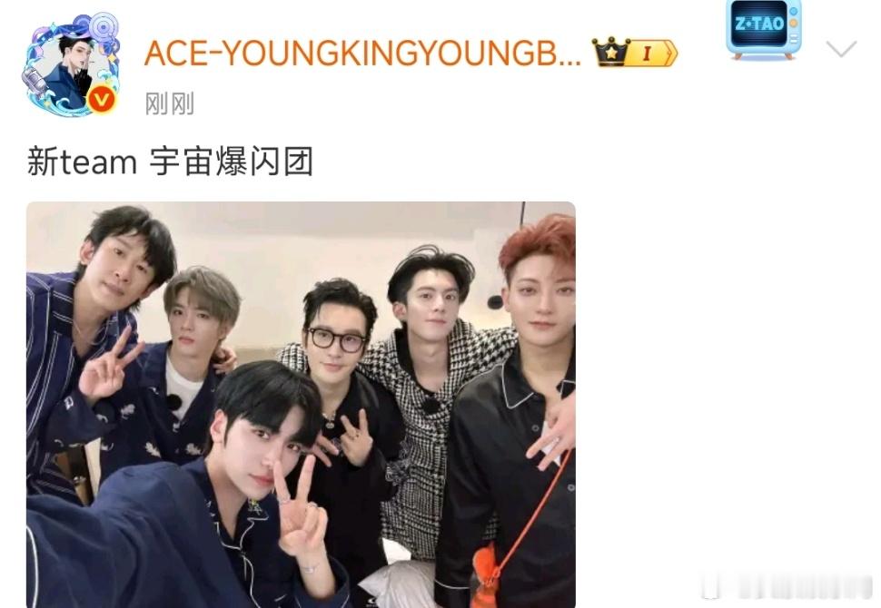 黄晓明成团第一张合照🈶宇宙爆闪团睡衣自拍来喽