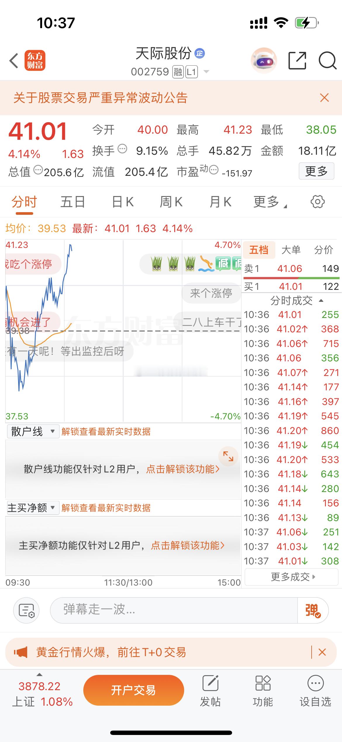天际股份还在回血中给我狠狠的拉,冲击涨停