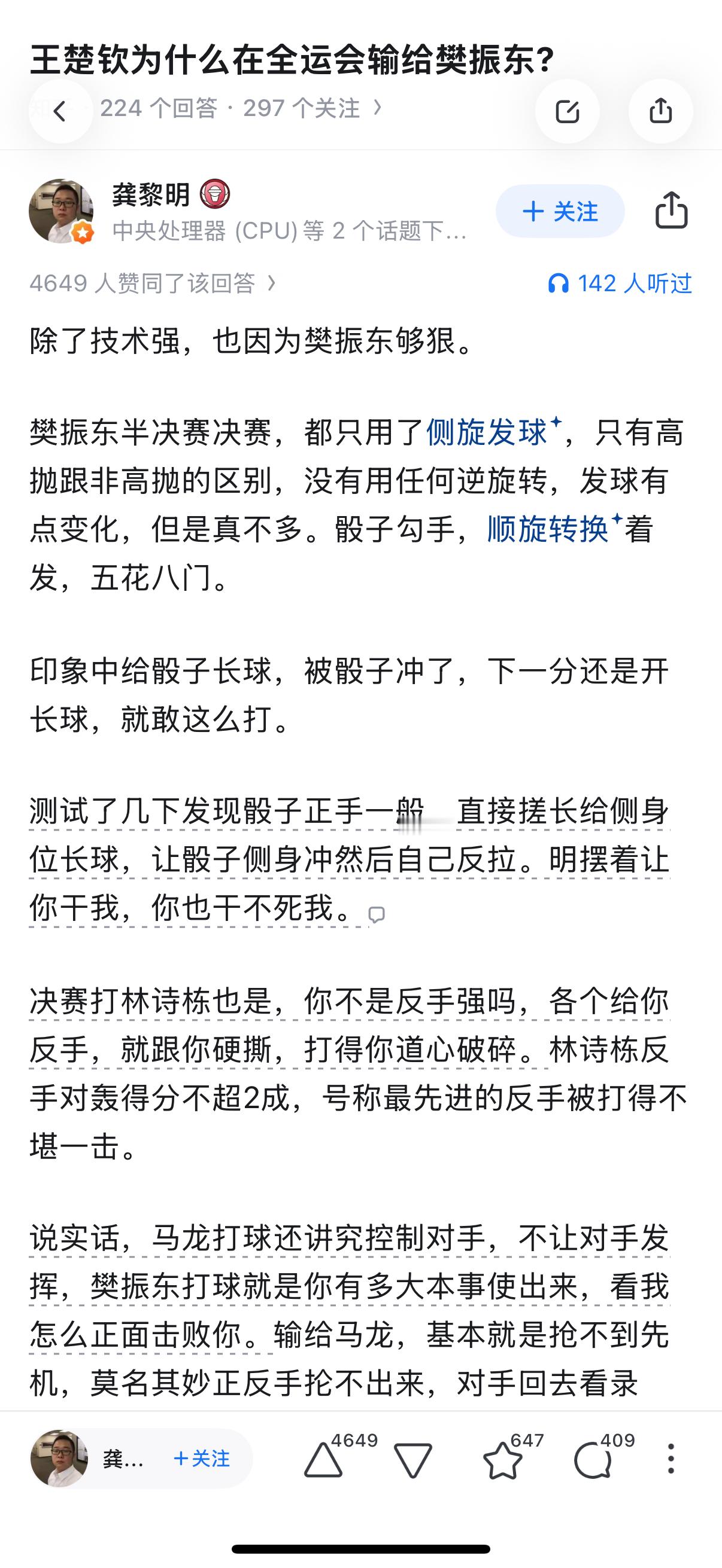 “内行人看门道,外行人看热闹!”很多人觉得王楚钦输得可惜,但这场球的精华全在