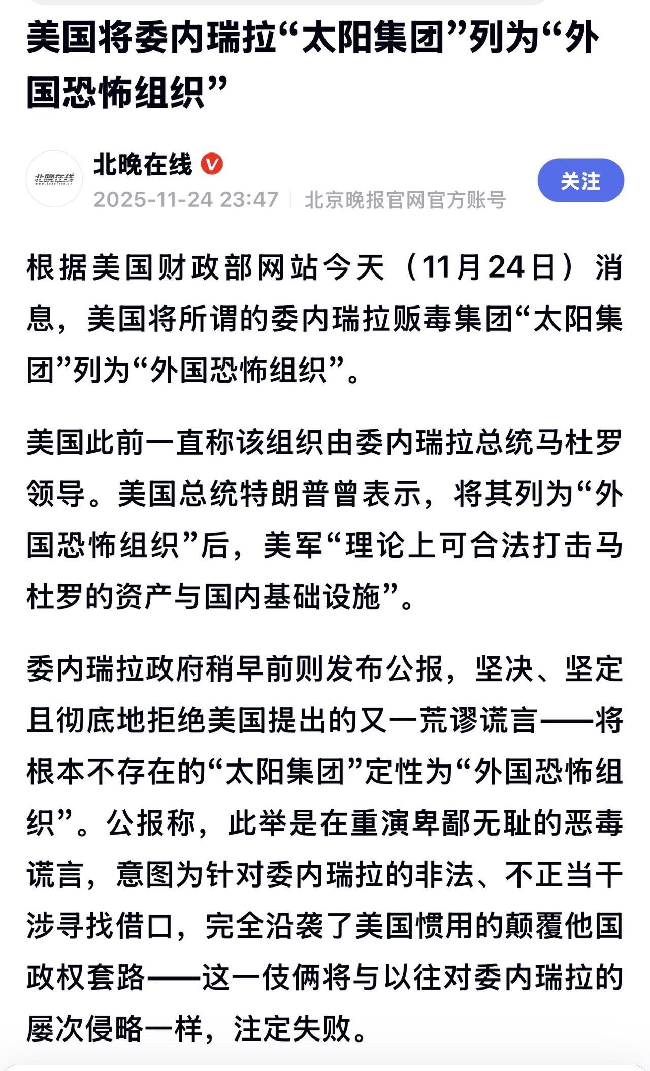 此举为美国政府采用新手段向委总统马杜罗进一步施压提供法律了依据