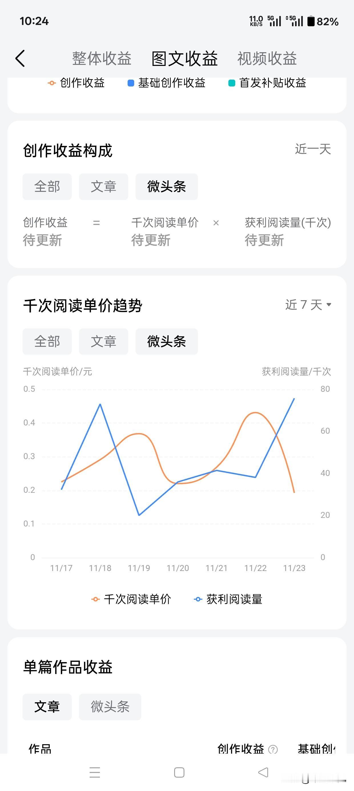 昨天数据出炉了!阅读量8.7万,涨粉25个,不知道今天单价能不能超过3毛? 不知道从什么时候开始,在今日头条上开始创作,每天单价都很低,只有一毛到三四毛,我也 很苦恼,不知道问题出在哪里?看很多条友的单价都很高,几千的阅读量,都可以拿到10元! 我想要拿到10元,最起码也需要50000的阅读量,虽然,我每天的阅读量,都在1万以上,可 是单价太低了,有的朋友说,这个提高单价的方法! 要具体,看点赞量,评论量,转发量,可是有的微头条,评论量也有100多个,但是,千次阅读单价,还是少的可怜! 大家的单价都是多少?有没有提高单价的方法,真的跪求了!