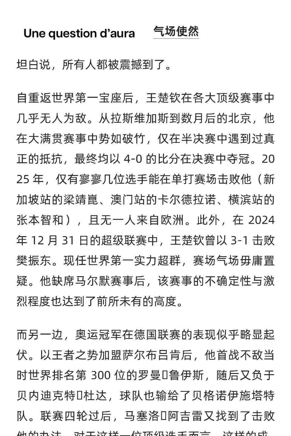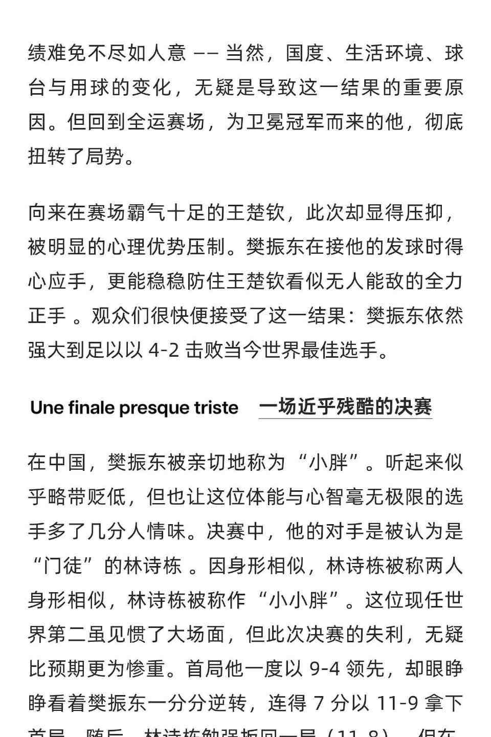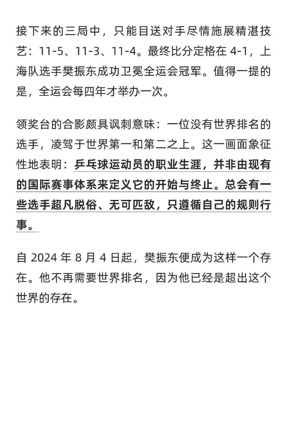 法媒评价樊振东,一下子把我们听爽了! 全运会夺冠后,法国《队报》夸赞樊振东:“不再需要世界排名,因已是超越世界的存在。” 想对法媒说:你是会夸人的,评价中肯,总结也非常到位,以后请多夸。 加油啊,T0级选手,期待更多精彩绝伦的比赛! #新锐创作者成长计划#