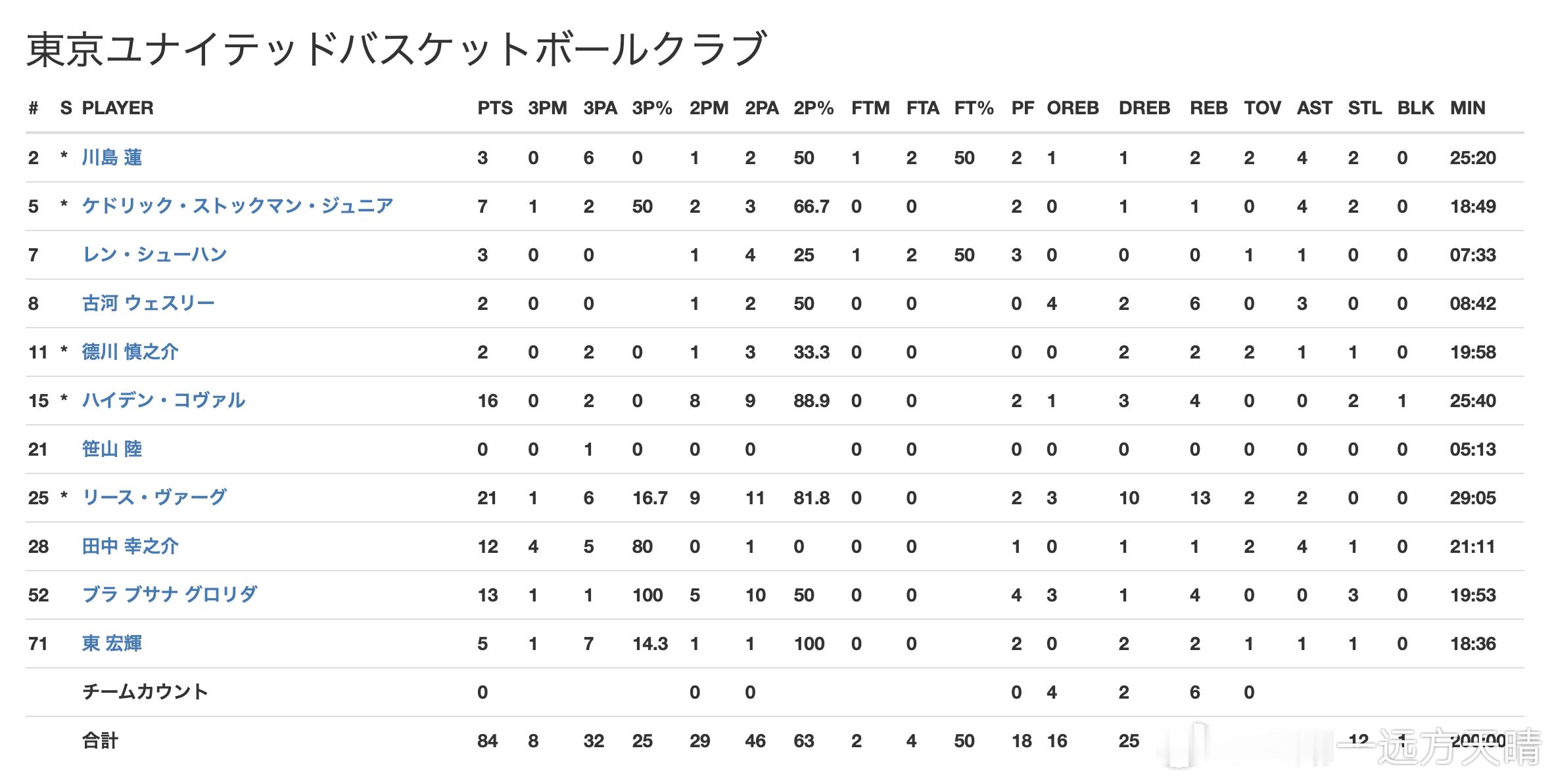 大任球队TUBC在周日的这场比赛以84:69战胜了对手。大任在这场比赛中出战了7