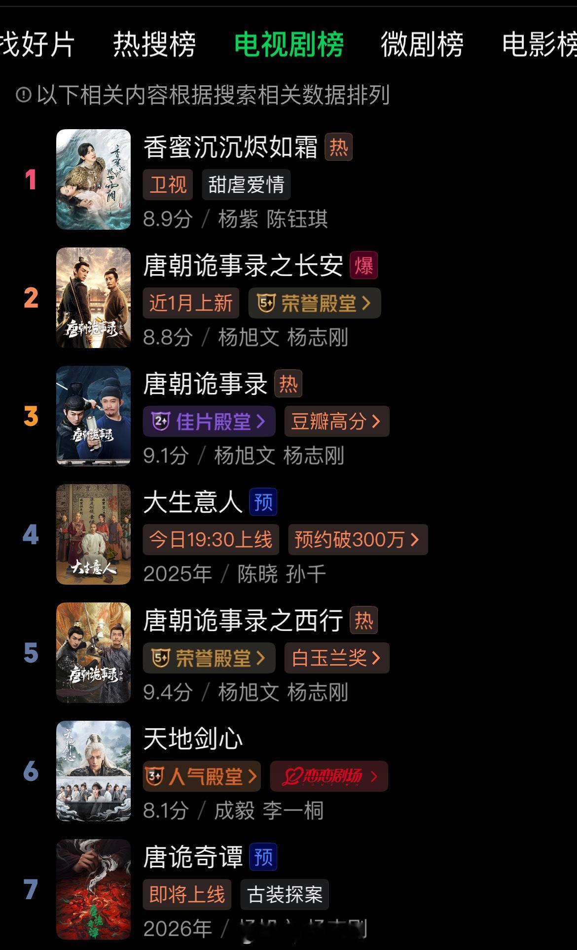 杨紫香蜜沉沉烬如霜在爱奇艺热搜榜和电视剧榜全登顶,这也太牛了吧。