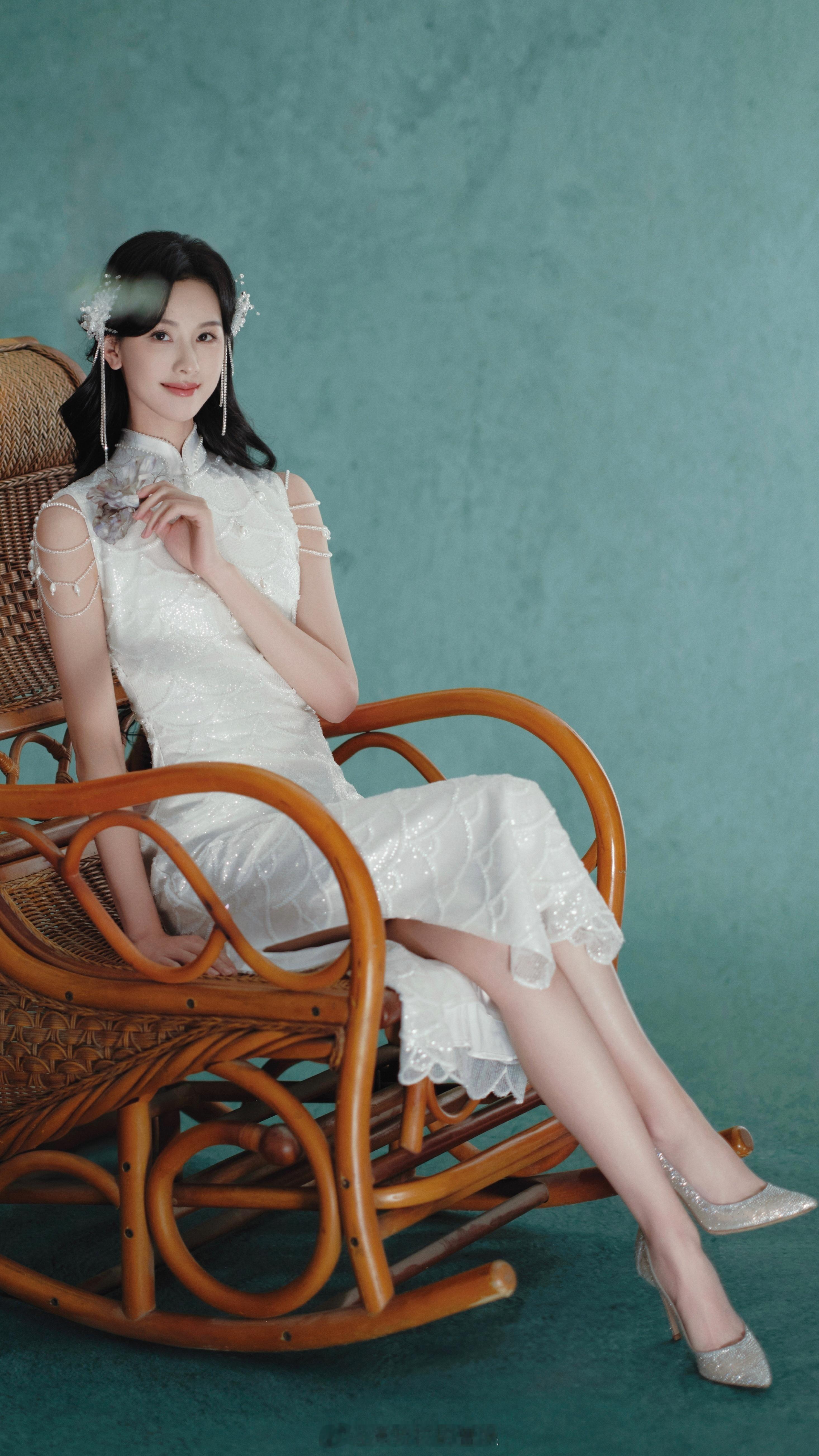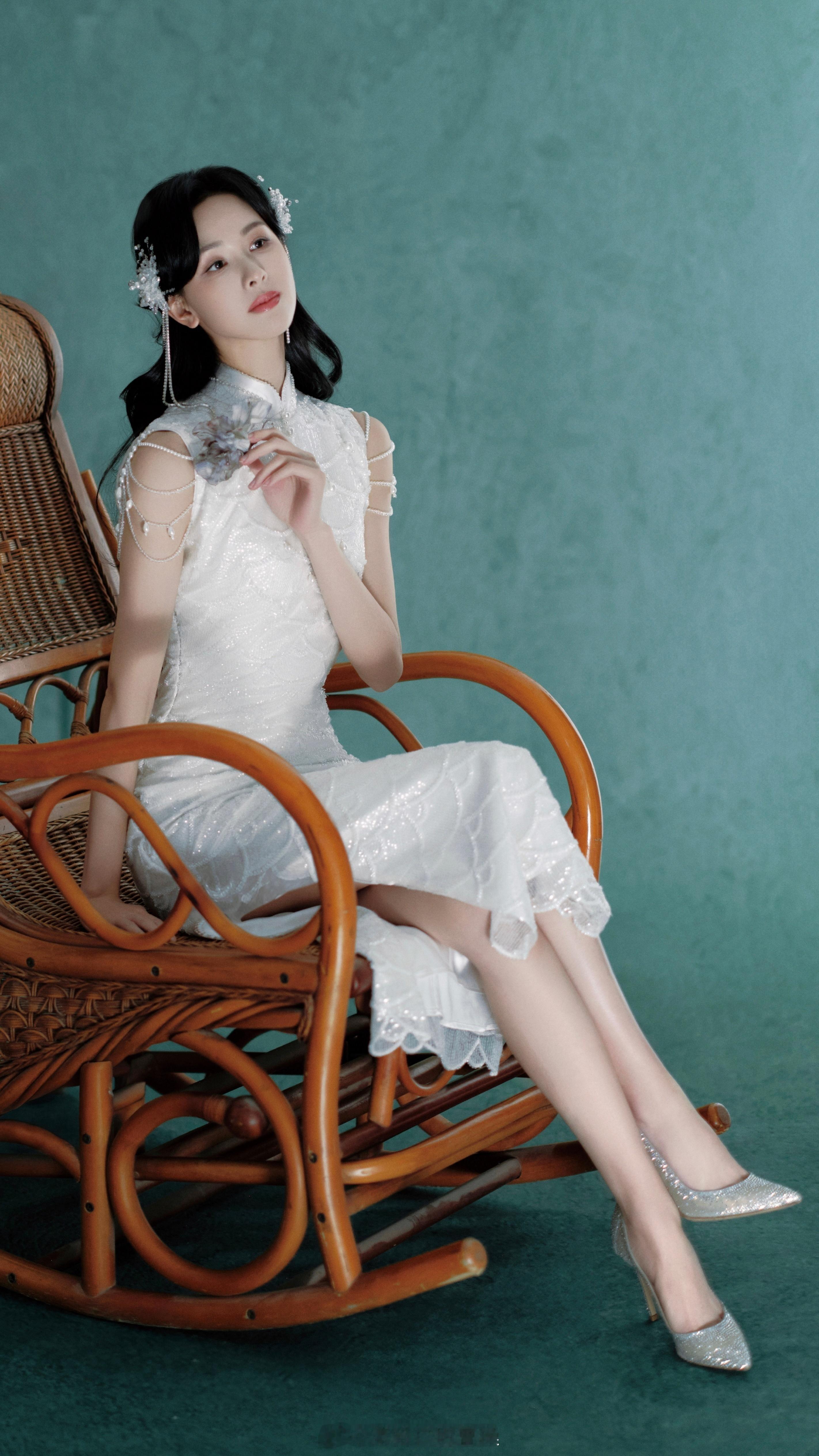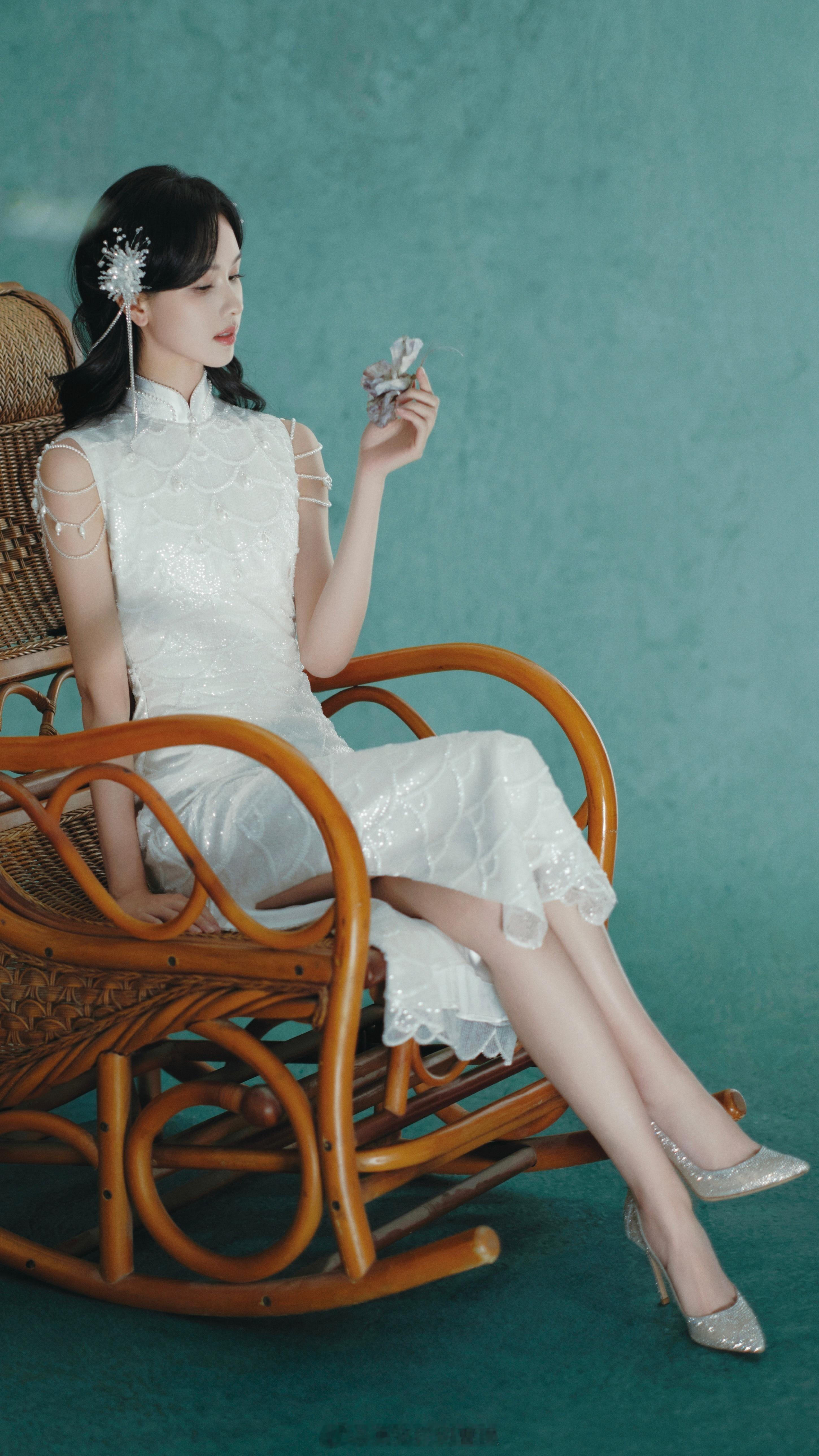 白旗袍绣繁花,银饰簪发添雅致,她将东方的婉约与魅惑揉成一体,每一寸剪裁都在诉说旗