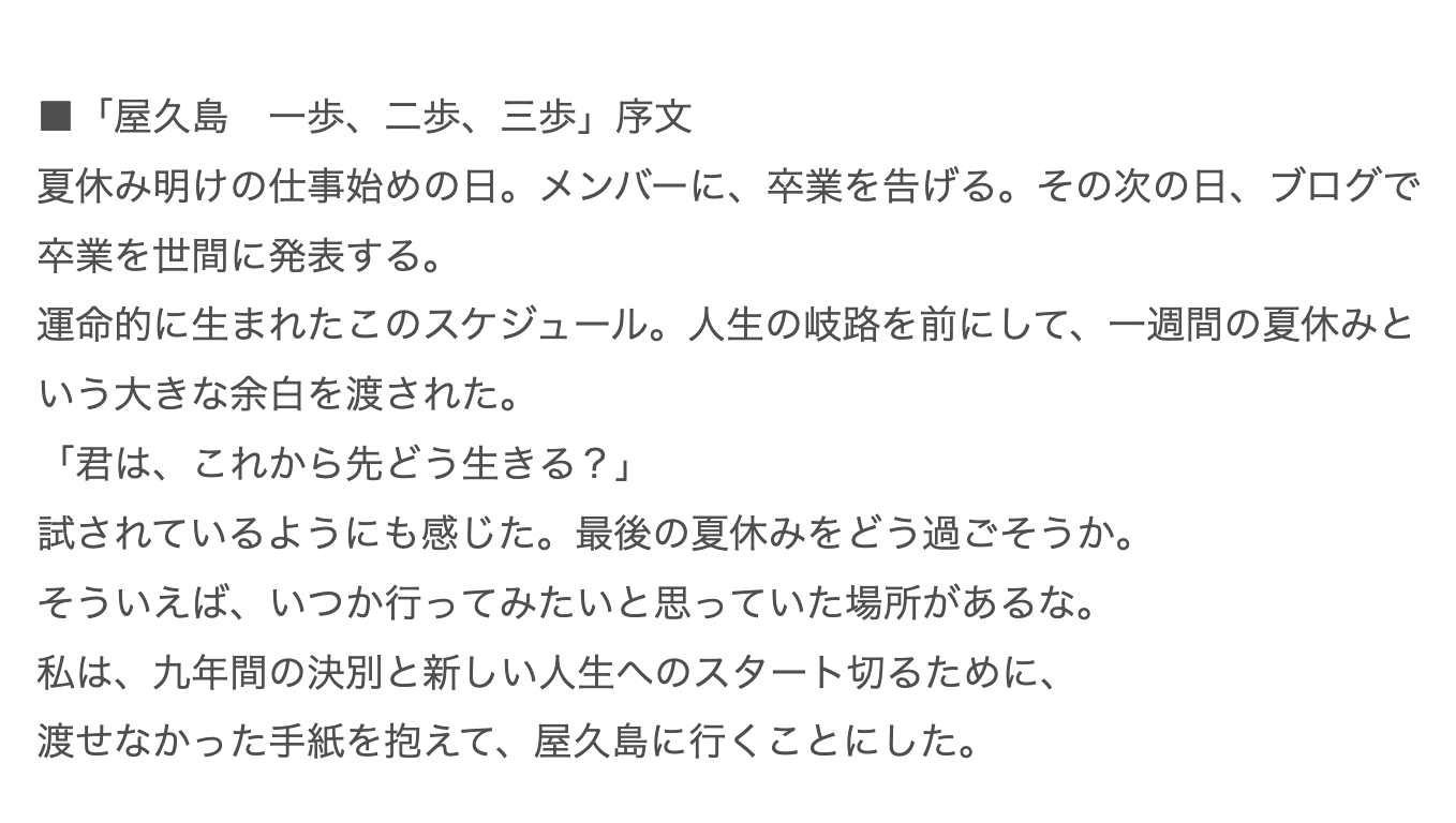 『LOSTLETTER』序文✍「屋久島 一歩、二歩、三歩」