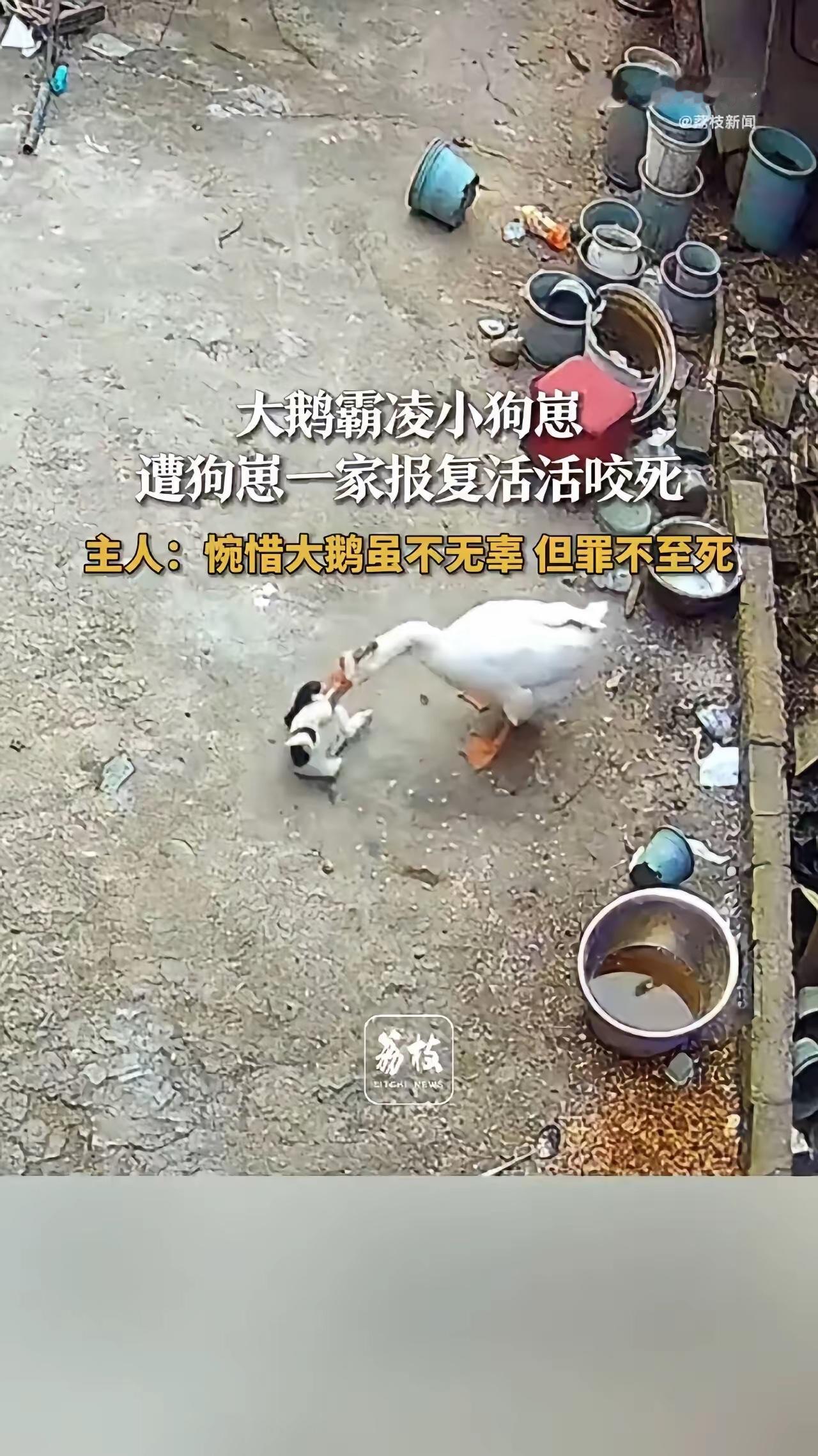 河南周口周女士家的院子里,最近上演了一场“动物界复仇大戏”:一只平时横行霸道的大鹅,因为总欺负刚出生的小狗崽,被狗妈妈带着两只成年狗崽围追堵截,最终活活咬死。发现时大鹅尸体僵硬,羽毛凌乱,脖子上的伤口触目惊心——这场“鹅狗大战”的监控视频传到网上后,直接冲上热搜,网友吵翻了天:“大鹅活该!欺负弱小就该付出代价!”“狗子下手太狠了,算不算防卫过当?” 从周女士的描述和监控画面里能拼凑出完整经过:这只大鹅平时在院子里“称王称霸”,见着小狗崽就追着啄,小奶狗被吓得吱哇乱叫,狗妈妈只能护在旁边干着急。11月24日中午,大鹅又盯上一只缩在角落的小狗崽,扑过去就啄,狗妈妈瞬间炸毛,冲着大鹅“汪汪”狂叫,两只已经长大的狗崽也冲过来帮忙。三只狗把大鹅堵在墙角,你一口我一口,大鹅扑腾着翅膀想逃,却被按在地上动弹不得。等周女士听到动静赶来时,大鹅已经没了气息,地上散落着几根羽毛,狗崽们蹲在旁边,眼神里还带着警惕。 这事儿最扎心的,是大鹅的“霸凌”早有前科。周女士说,这只鹅养了三年,平时就爱欺负比它小的动物,之前还追过邻居家的小猫,把猫吓得爬到树上不敢下来。这次欺负小狗崽,纯粹是“惯犯作死”——可谁也没想到,狗妈妈会带着孩子“组团复仇”。有网友翻出监控里大鹅追小狗崽的画面:小奶狗踉踉跄跄跑,大鹅伸长脖子追,翅膀扇得呼呼响,那架势哪像“欺负”,简直像要“下死手”。狗妈妈护崽时的眼神,隔着屏幕都能感受到愤怒——换作任何母亲,看到孩子被欺负,都不可能忍气吞声。 但“复仇”的代价,也引发了激烈争论。有人觉得狗子“干得漂亮”:“大鹅欺负弱小的时候怎么没人说它狠?现在被反击就喊冤?”“动物界也有‘正当防卫’,狗妈妈护崽是天性,换作是人,孩子被欺负不得拼命?”可也有人替大鹅鸣不平:“虽然它欺负小狗不对,但直接咬死是不是太过了?”“万一狗子咬红眼伤到人怎么办?”甚至有人搬出法律条文:“根据《刑法》,正当防卫不能超过必要限度,狗子这算不算防卫过当?”——可法律能管动物打架吗?动物的行为,本就带着原始的生存本能,哪像人类能精准控制“力度”? 更让人唏嘘的,是这场“鹅狗大战”背后的隐喻。大鹅的“霸凌”,像极了生活中那些仗势欺人的人:仗着自己体型大、力气足,就欺负比自己弱小的;狗妈妈的“复仇”,又像极了所有护崽的母亲——你可以欺负我,但别动我的孩子,否则拼了命也要讨回来。有网友评论:“大鹅的死,不是因为狗子狠,而是因为它不懂‘尊重弱小’的道理。”这话扎心却真实:无论是动物还是人,欺负比自己弱小的,早晚会踢到铁板。 这场“鹅狗大战”没有真正的赢家:大鹅丢了命,狗崽们经历了血腥场面,周女士也心疼得直掉眼泪。但它像一面镜子,照出了我们对待“霸凌”的态度——当弱小被欺负时,是选择沉默,还是勇敢反击?当反击过度时,是该指责“下手太狠”,还是反思“为什么会被逼到这一步”? 最后想问问大家:如果你家宠物被欺负,你会教它“忍气吞声”,还是“以牙还牙”?你觉得狗子的行为算“正当防卫”吗?评论区聊聊吧——你的每一条留言,都是在为“弱小者”发声,也是在给“霸凌者”敲警钟。毕竟,无论是动物还是人,尊重生命、敬畏弱小,才是最基本的生存法则。 来源:头条热搜