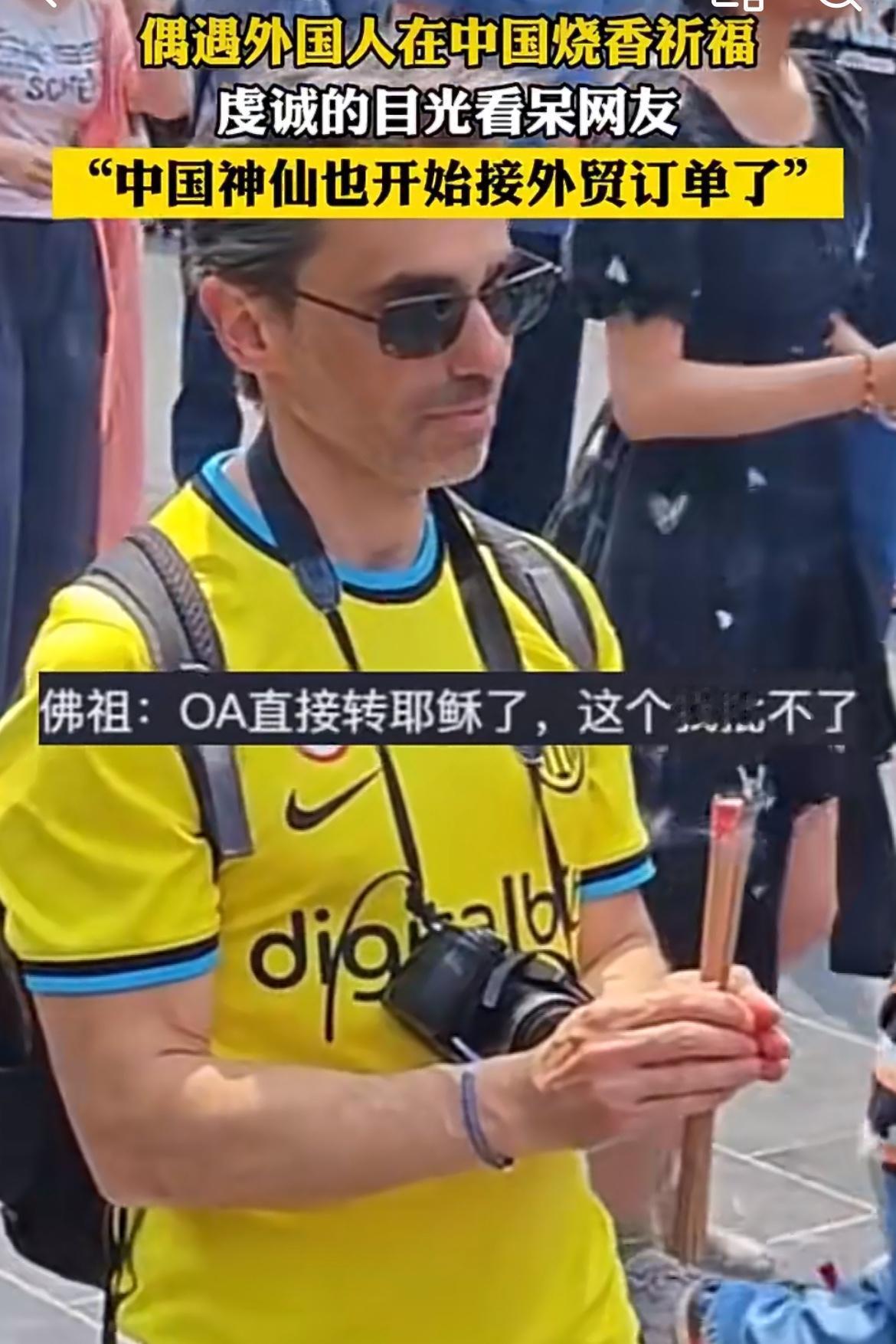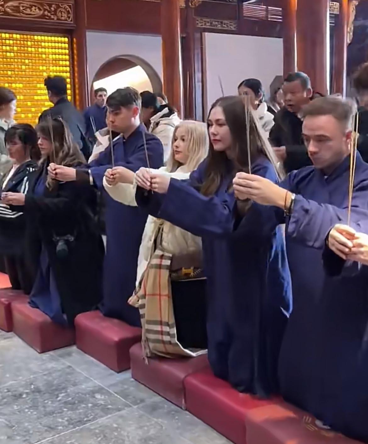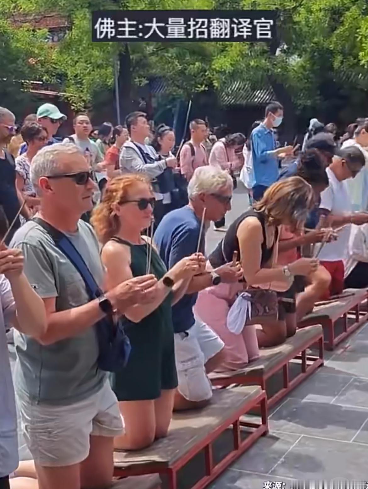 想不到想不到,外国人也来中国烧香拜佛了,除了美食,拜佛祖也成为外国人必打卡项目了。他们是信上帝的,不知道佛祖和上帝私下有沟通没有,要不然不灵啦。不知道这些外国人烧香求的是什么呢?姻缘,财富,工作,还是求子、祈福?烧完香记得往功德箱里多丢点红票子,佛祖可是讲究人。求神拜佛