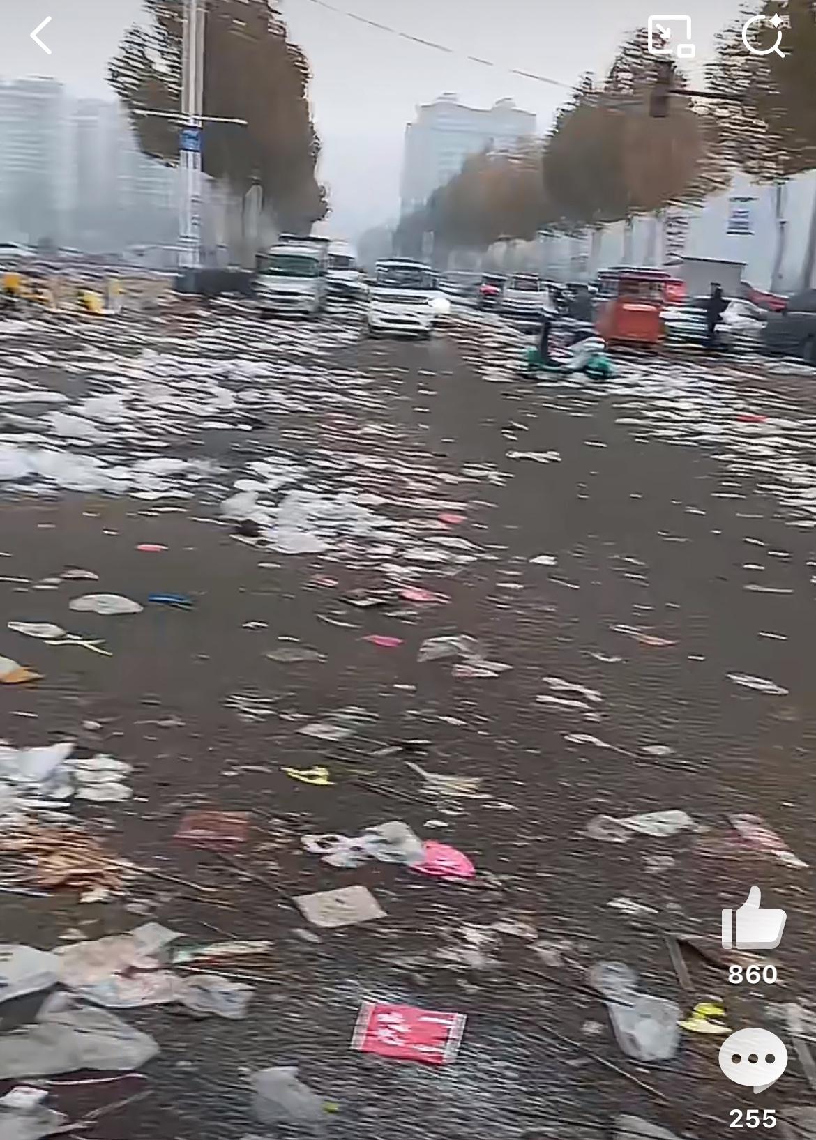 网友曝光山东一地大集结束后的垃圾遍地场景,触目惊心。环卫工人看到了,直接要崩溃,这么多的垃圾要清扫到猴年马月。逛大集,吃美食,体验民俗风情,本来是一件美好的事。可是能不能不要随地丢垃圾,这样的环境被糟蹋了,大集后面还有人敢来吗?还有里面的商户,别顾着赚钱,维护环境才能长久啊。