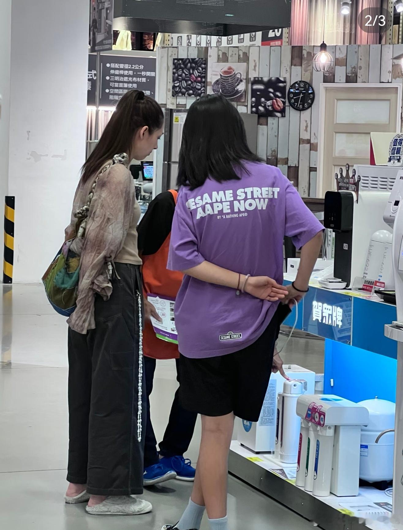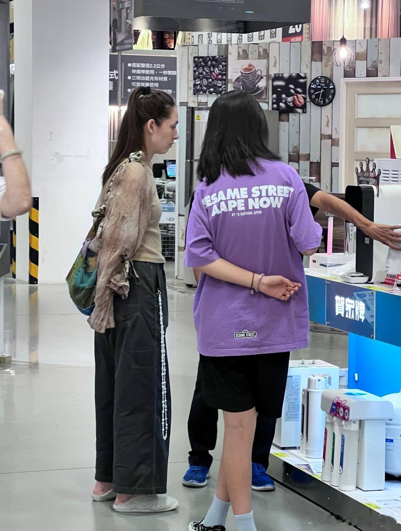 有网友在台北偶遇郭碧婷,只见她打扮休闲,带着两个孩子在逛街。