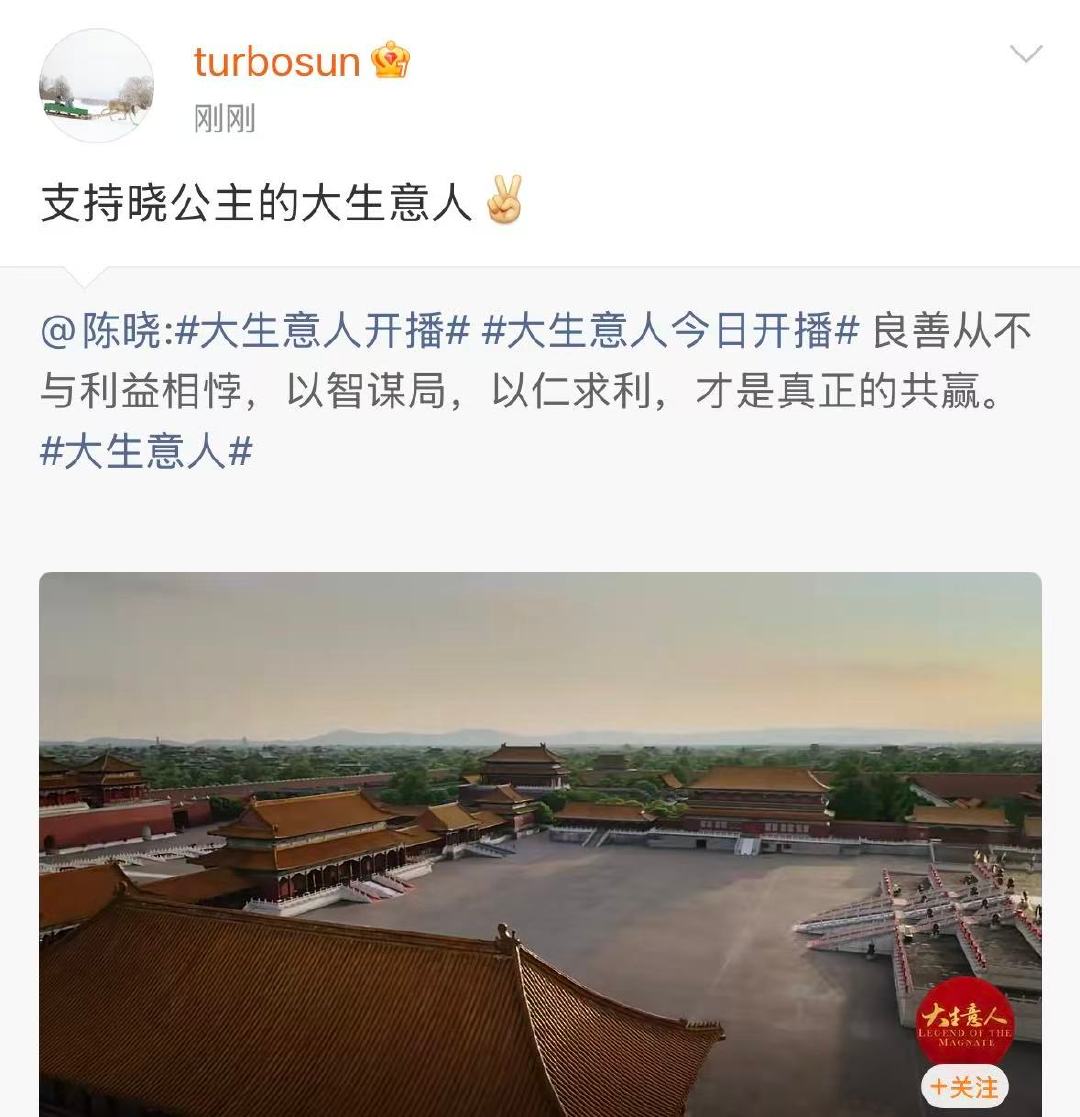 于正发文宣传大生意人今日的微博留给 ,期待好戏开锣,一飞冲天。快去预约观看吧!