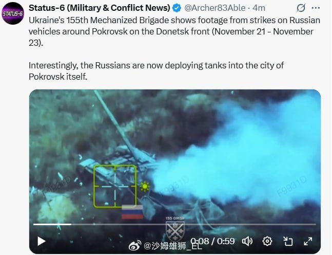 笑死,之前俄军“卢比孔”无人机部队发布的在红军村附近使用自杀式FPV无人机摧毁乌军坦克的画面也被乌军侦察无人机拍下,然后乌军也发布了这个视频,并直接宣称这是乌军摧毁俄军坦克。