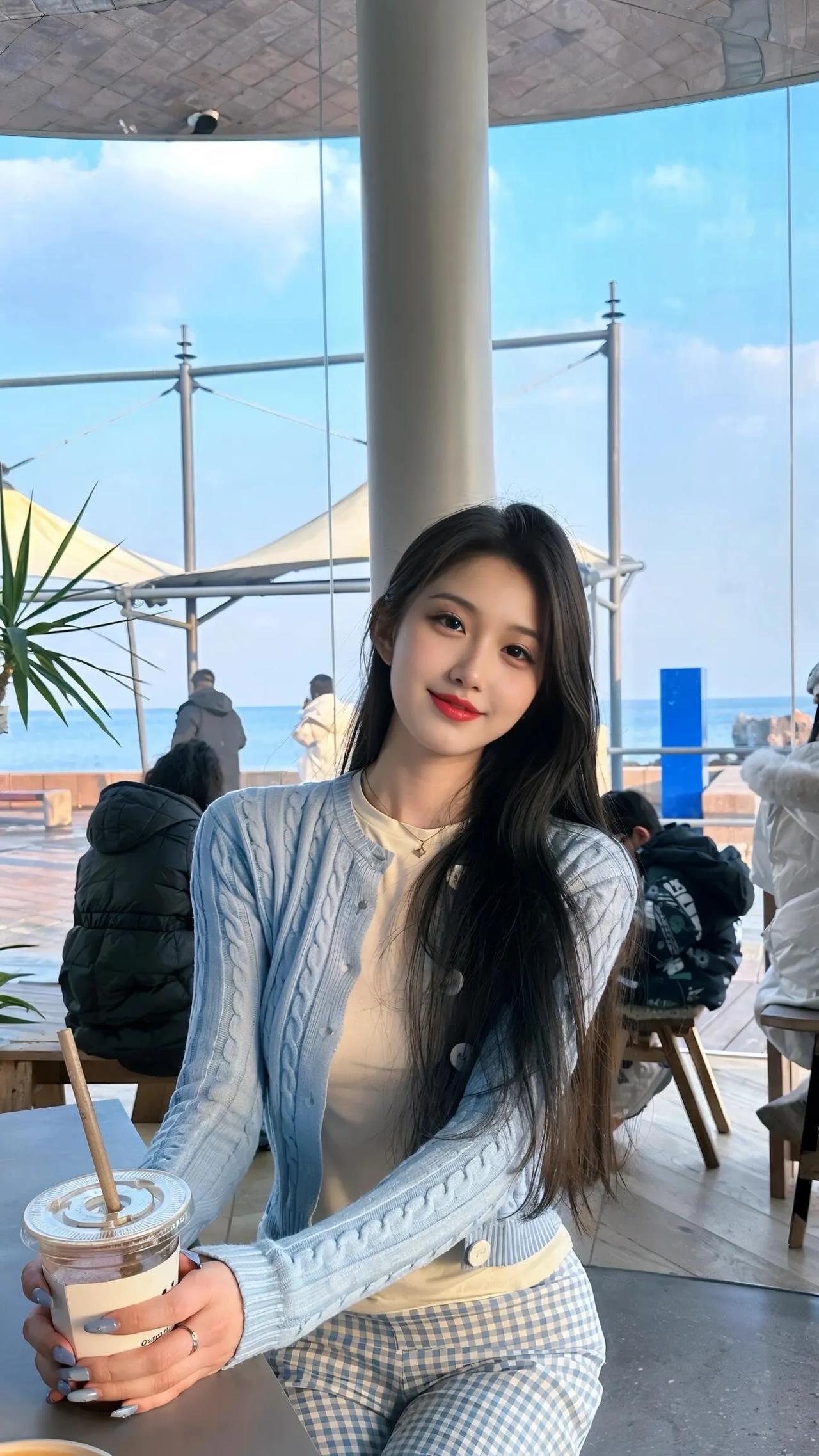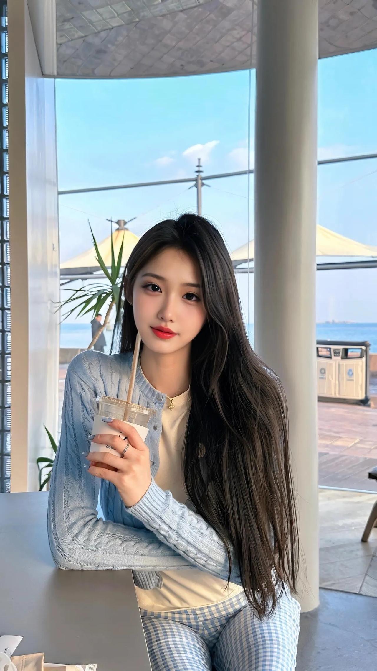 海边咖啡馆的甜美时光,享受阳光和奶茶的美好。