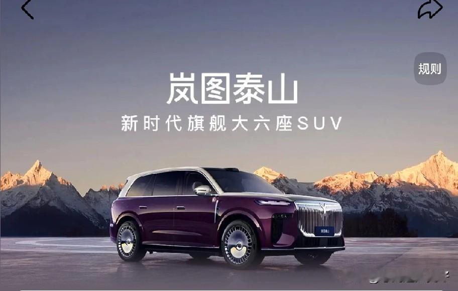 岚图泰山!它是东风旗下岚图品牌的旗舰SUV。外观有东方美学,看着就有气势。动力牛,岚海智能超混系统续航超强。智能配置也厉害,华为乾昆ADS4驾驶辅助、鸿蒙座舱5等顶尖配置都安排上了。底盘有三腔空气悬架与后轮转向,开着稳。45.99万起的价格,能有这配置,性价比挺高!