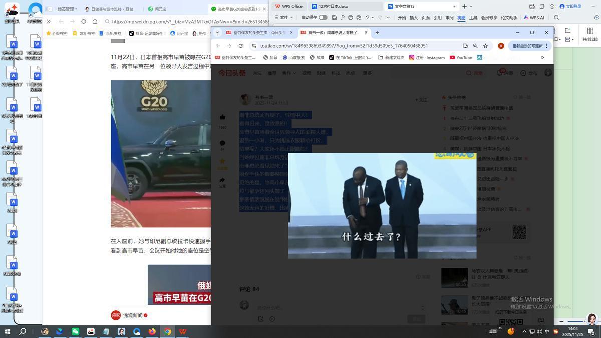 南非总统太有梗了,性情中人!日本首相高市早苗G20峰会摆大谱,为挑衣服迟到近一小时,路过南非总统拉马福萨时,对方直接 “装瞎”,低头整理领带全程不看她,等她走后还回头瞥一眼,来了一句“什么过去了?”。 2025年11月22日的G20峰会出了个大新闻,日本首相高市早苗居然迟到了将近一小时,害得其他国家的代表在会场外等了半天,更有意思的是,她进场路过南非总统拉马福萨时,人家压根没理她。 当时拉马福萨正站在会场入口附近跟人聊天,看见高市早苗过来,立马低下头假装整理领带,手指在领带上翻来覆去地摆弄,全程连眼皮都没抬一下,就跟没看见有人路过一样。 高市早苗本来昂首挺胸的,见这情景脚步顿了一下,脸上的表情有点不自然,只能硬着头皮往前走,等她走过去之后,拉马福萨偷偷回头瞥了一眼,跟身边的人小声说了句“什么过去了?”,这话刚好被旁边的记者录了下来。 这事一出来就炸了锅,有人说拉马福萨太不给面子,也有人说高市早苗迟到在先,活该被无视,要知道G20峰会这种级别的场合,各国领导人都很守时,迟到近一小时确实太离谱了。 后来日本方面解释说,高市早苗是因为挑衣服才耽误了时间,说要选一件既符合场合又能体现日本特色的服装,挑来挑去就耽误了,这话别说其他国家的人不信,连日本网友都觉得丢人,说“首相参加国际会议,居然把时间花在挑衣服上”。 其实拉马福萨这么做不是没原因的,他本身就是出了名的性情中人,最讨厌摆架子、不守时的人。2023年的金砖峰会,有个国家的代表迟到了20分钟,他就直接在会场说“不守时是对大家的不尊重”,一点都不给面子。 更关键的是,南非和日本最近在贸易上有点摩擦,南非想扩大农产品对日本的出口,可日本一直设置壁垒,拉马福萨之前跟高市早苗提过好几次,对方都没当回事,这次迟到刚好撞在了枪口上。 有外交专家说,拉马福萨的“装瞎”其实是种外交表态,既表达了不满,又没直接冲突,比当面指责更巧妙,回头那句“什么过去了?”更是点睛之笔,明摆着说“你这种不尊重人的人,我根本懒得理”。 对比一下就知道,同样是国际场合,咱们的代表每次都提前到场,跟其他国家的领导人礼貌交流,这种守时和尊重,换来了大家的认可,也让咱们在国际上的口碑越来越好。 有人可能觉得不就是迟到一会吗,至于这么较真?你要是这么想就错了,国际会议上的守时不是小事,代表着对其他国家的尊重,也体现着一个国家的形象,高市早苗这么做,丢的不光是她自己的脸,还有日本的脸。 更有意思的是,高市早苗进场后,很多国家的代表都只是跟她点了点头,没像对待其他领导人那样主动上前握手,显然大家都对她的迟到有意见,连美国驻日本大使格拉斯都没帮她打圆场,估计也是觉得理亏。 拉马福萨的做法虽然直接,但也说出了很多人的心声,现在的国际交往,讲究的是互相尊重,不是谁的架子大谁就厉害,你要是不把别人放在眼里,别人自然也不会把你当回事。 有网友说“拉马福萨这波操作太解气了,就该治治这种摆大谱的人”,这话其实说到了点子上,不管是个人还是国家,尊重都是相互的,守时是最基本的礼貌,连这点都做不到,还谈什么合作? 这件事也给所有国家提了个醒,国际舞台上拼的不是架子,是实力和尊重,你越是尊重别人,别人就越愿意跟你合作;你越是摆谱,就越会被孤立,这是永远不会变的道理。 拉马福萨的“性情中人”,其实是一种真诚的体现,不藏着掖着,不搞虚情假意,这种外交风格反而更能赢得人心,也让大家看到,外交不一定非得端着架子,真诚和尊重才是最有力的“武器”。 信息来源: 大众日报——2025-11-22 高市早苗被曝G20峰会迟到近一小时,自称此前花太长时间挑选服装