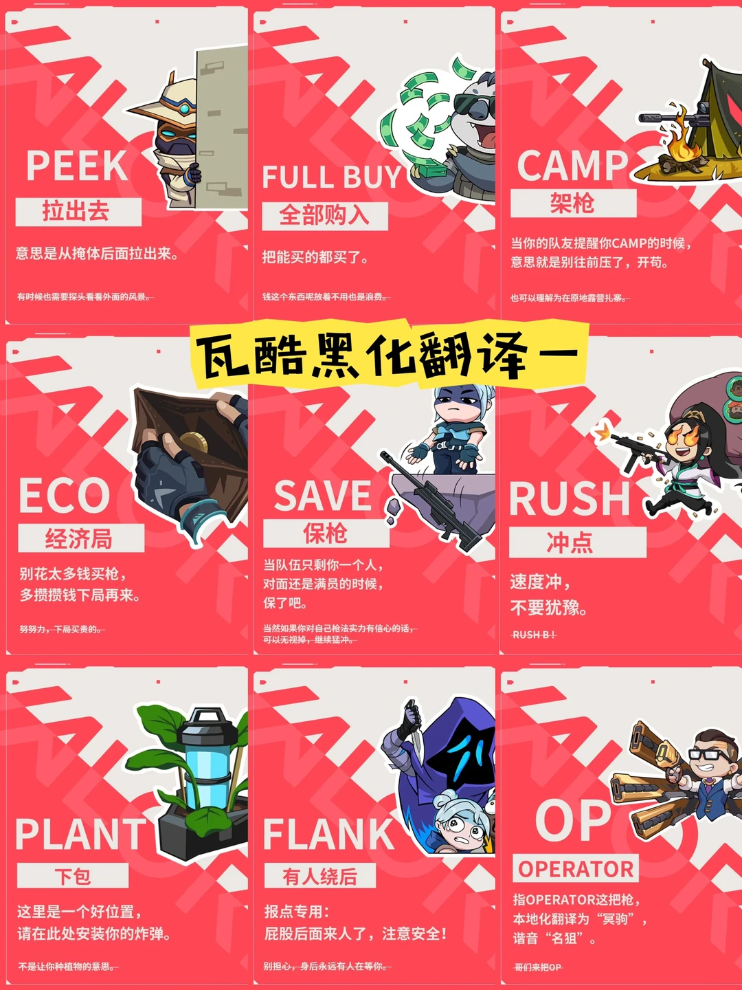 详细的黑话翻译讲解都放在图8-图9了,了解这些,🌚避免游戏时跟队友沟通一脸懵!