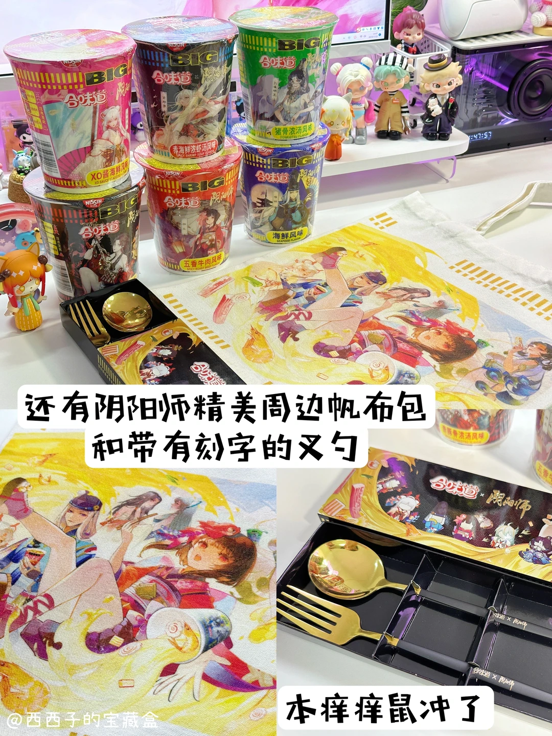🎁6杯装还有印有阴阳师式神崽的帆布包,和一对勺叉餐具,收集控有被满足耶~
