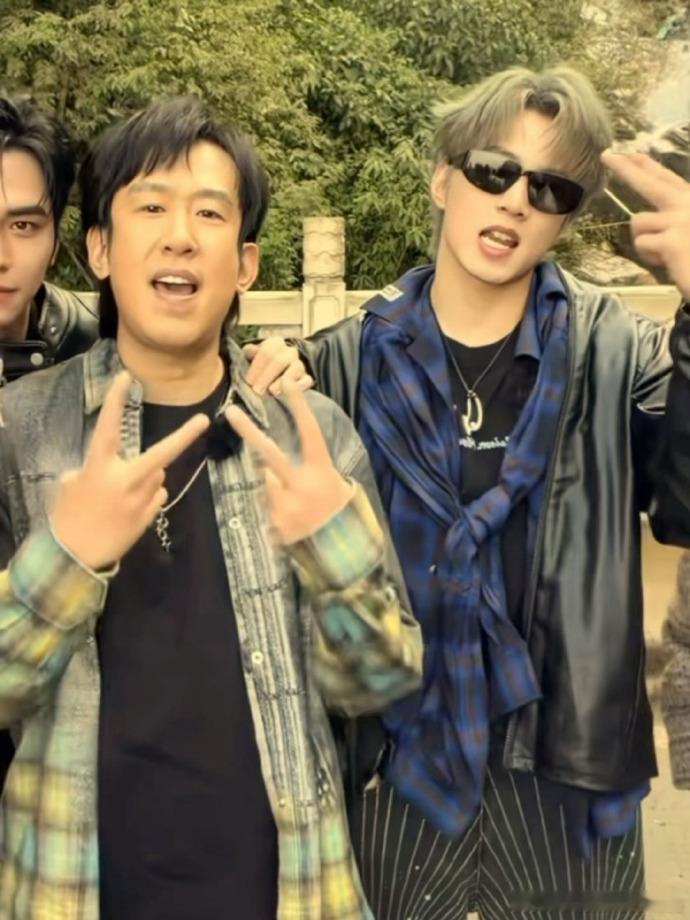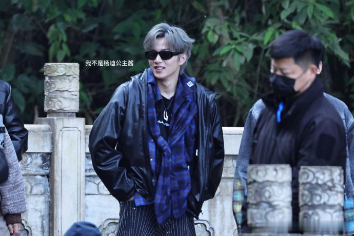 刘耀文银发皮衣Bking感,刘耀文于洋瀑布前合照,谁懂于洋老师也是很爱和我们耀文拍照的吧~