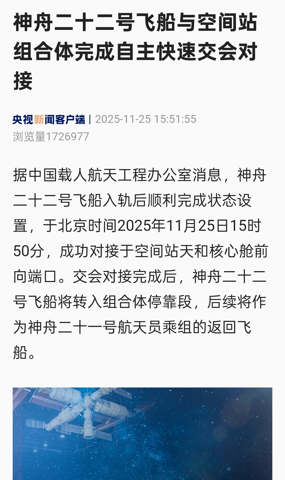 神舟二十二号飞船于2025年9月出厂后,在酒 泉卫星发射中心完成了总装和测试工作