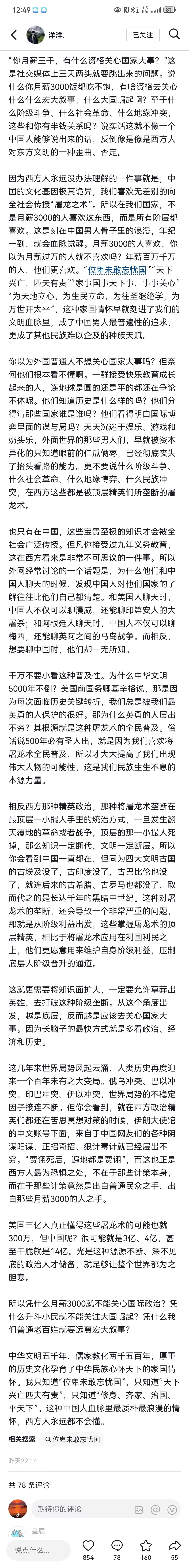 【月薪三千与诸葛亮会】话说“月薪三千”的孩子没有被启蒙,没有觉悟,没有觉醒,没有革命自觉,这才是最要命的。“三个臭皮匠,顶个诸葛亮”。从建军之初,解放军就有战前开战斗会议的优良传统,战前分析、战中反馈、战后总结,很多成功的战术都是基层战士想出来的。人人关心天下大事,是刻在中国人心头的历史传统和文化基因。《国际歌》早就给出了答案:“不要说我们一无所有,我们要做天下的主人”。