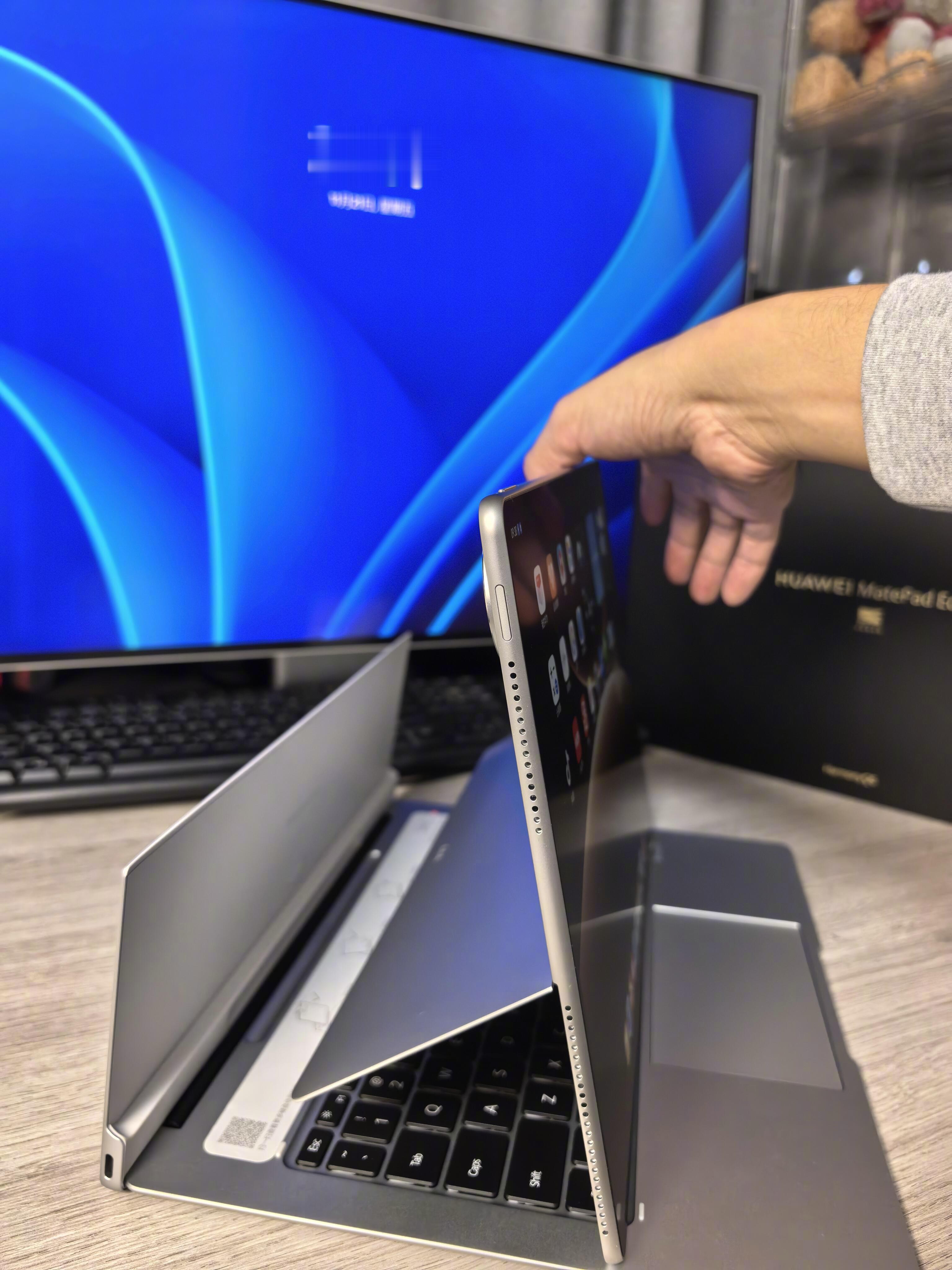 这玩意往办公桌上一摆,同事怎么看你?讲真,MatePadEdge 往桌上一摆,往客户那一摆,我感觉我自己都更专业了三分 哈哈,调性直接拉满!