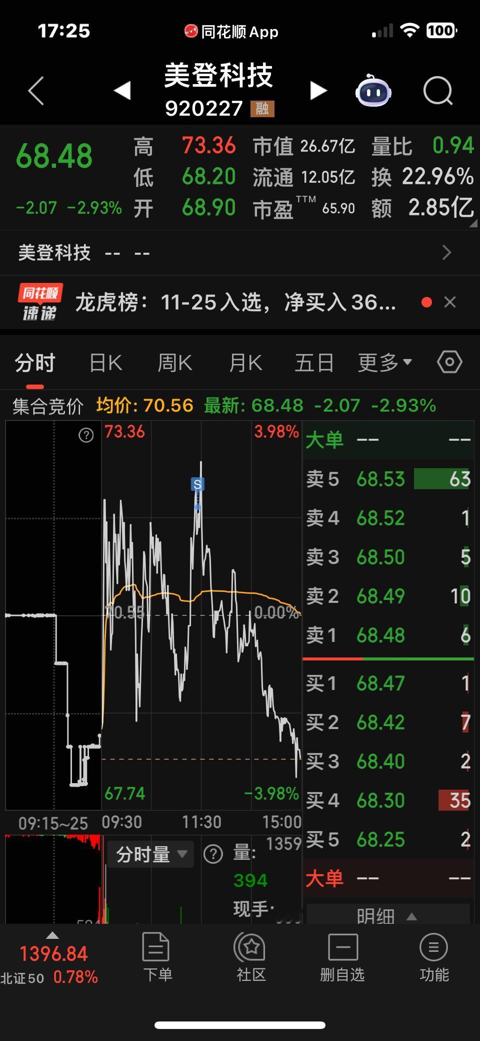 热点没有任何的持续性, 量化高频主导, 盘面除了混乱, 毕竟机器是没有情绪的。 如果上面继续放任量化高频, 而不是允许量化, 但限制高频, 那么这股市不会发挥该有的作用。 今天卖出美登科技, 割肉开创, 即便是开盘半小时封板, 依然美肉吃, 这就是现在的真实生态。
