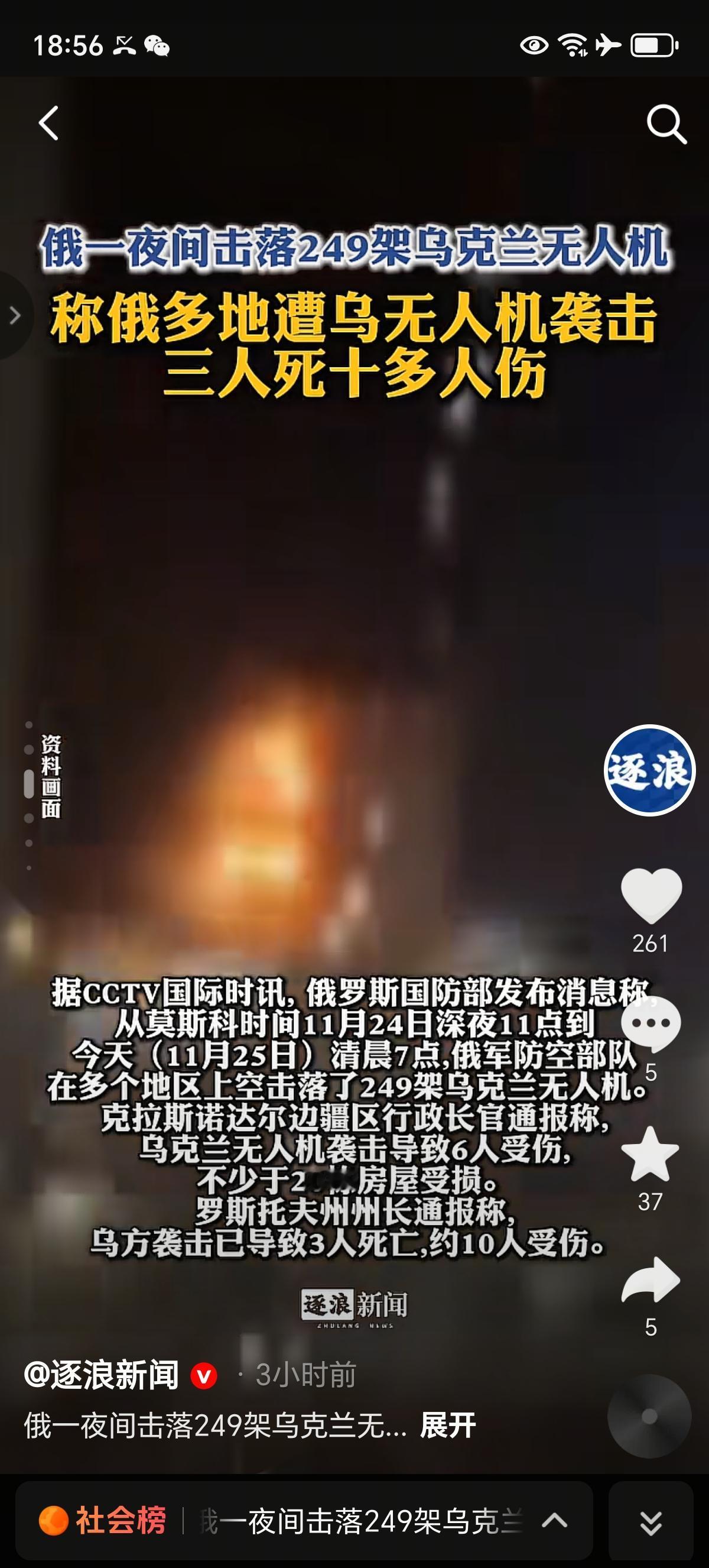战争还没有结束,俄乌这边又有大动静了11月24夜晚到11月25日凌晨8小时内,俄防空部队一口气打下了249架乌克兰的无人机。 重点是,这些无人机全是往俄罗斯本土飞的,拦截地点全在俄自己的地盘:黑海上空(俄领海)打下来116架,占了快一半;俄南部的克拉斯诺达尔边疆区上空拦了76架,西南部的罗斯托夫州上空也拦了16架,另外克里米亚、布良斯克这些地方也都截下来不少。 说白了,这就是乌克兰无人机奔着俄本土去搞袭击,被俄防空部队给拦下来了。但还是有漏网的——克拉斯诺达尔那边6个人受伤,20多栋房子被砸坏;罗斯托夫更严重,3个人没了,还有10个受伤。 其实俄乌冲突到现在,互相用无人机、导弹轰对方本土早就不是新鲜事了,但这次乌方一次性放这么多无人机过来,也算是近期规模比较大的一次袭击了。