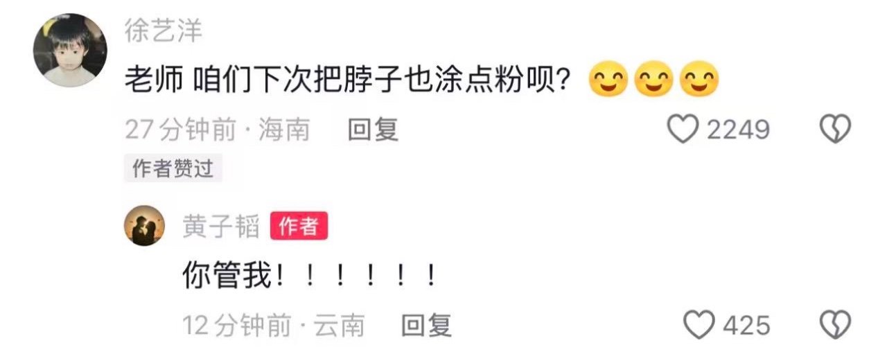 一个评论让脖子也涂点粉一个你管我,这把真是对抗路夫妻来了
