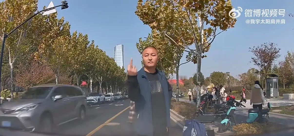 上海街头这事儿真是刷新三观!一家三口放着斑马线不走,非要横穿马路,司机按喇叭提醒竟遭孩子爸竖中指,还直接拦在车头前耍横不让走,这操作谁看了不气炸! 大中午的马路上,车跑得正顺,司机刚松了口气,突然从路边冲出来三个人。 是一家三口,压根不看斑马线,也不管五十米外就有的过街通道,径直往路中间闯。 司机吓得手都抖了,赶紧踩刹车,还轻轻按了下喇叭,就怕撞着这一家子。 没想到,这一下竟惹恼了孩子爸。他没拉着老婆孩子躲开,反倒回头恶狠狠地瞪着司机,手指头还比出不体面的样子。 接着掏出手机,对着车子一顿乱拍,拍完直接走到车头前,叉着腰站定,双臂一抱,死活不让车走。 孩子就站在马路中间,直愣愣地看着爸爸撒野,孩子妈在旁边站着,啥也不说,任由丈夫胡闹。 好好的路瞬间堵得严严实实,后面的车一个劲按喇叭,路过的人围过来,你一言我一语地议论,都觉得这男人太过分。 司机从头到尾没做错啥。按喇叭是怕对方没看见车,刹车是尽本分,换谁遇到这种情况都会这么做。 可这孩子爸,自己横穿马路违反规矩,按规定能警告或者罚5到50块钱,他不光不认错,还把别人的好心当成驴肝肺。 最让人上火的是,他当着孩子的面做这种没素质的事。父母是孩子的第一任老师,你这么蛮不讲理,孩子看了会怎么想? 会不会觉得只要耍横就能占便宜,规则想破就破?这种坏影响,比教多少道理都管用,纯粹是带坏孩子。 再说了,马路中间车来车往,万一有车没注意到这边僵持着,撞过来咋办?到时候后悔都晚了。 他只顾着自己耍威风,根本没把老婆孩子的安全当回事。 现在有些人总觉得,车子就该无条件让着行人,把“车让人”当成自己的特权,却忘了行人也得守规矩。 车让人是文明,人守规才是底线,少了哪一样都不行。司机礼让是情分,不是本分,不能因为人家让着你,就蹬鼻子上脸。 这孩子爸这么做,丢了自己的脸不说,还破坏了路上的秩序,以后谁还敢提醒违规的行人? 交通规则不是只管司机,走路的也得守。放着好好的过街设施不用,就因为一声提醒就撒泼,既违法又丢人品,还带坏孩子,真是得不偿失。 你平时遇到过这种蛮不讲理的人吗?要是你碰到这种事,会怎么处理?欢迎在评论区说说你的经历。