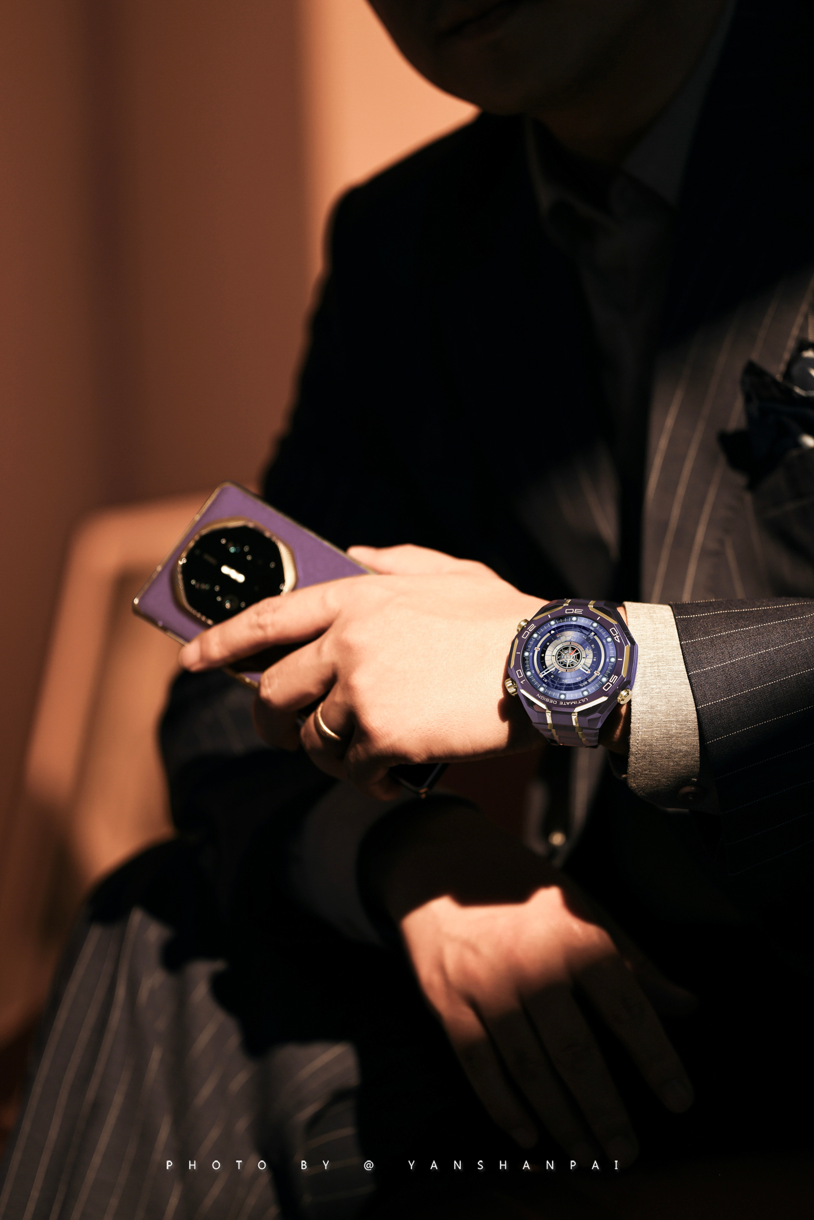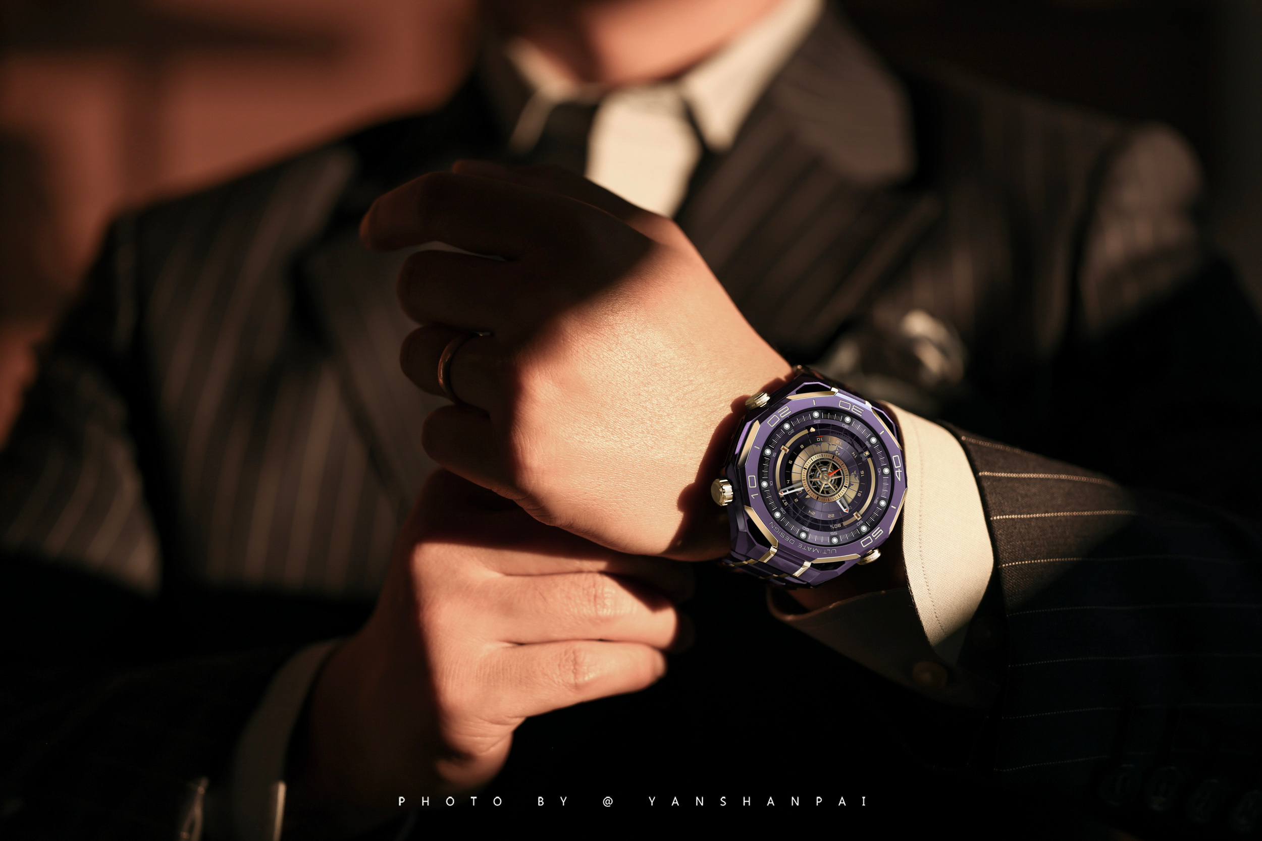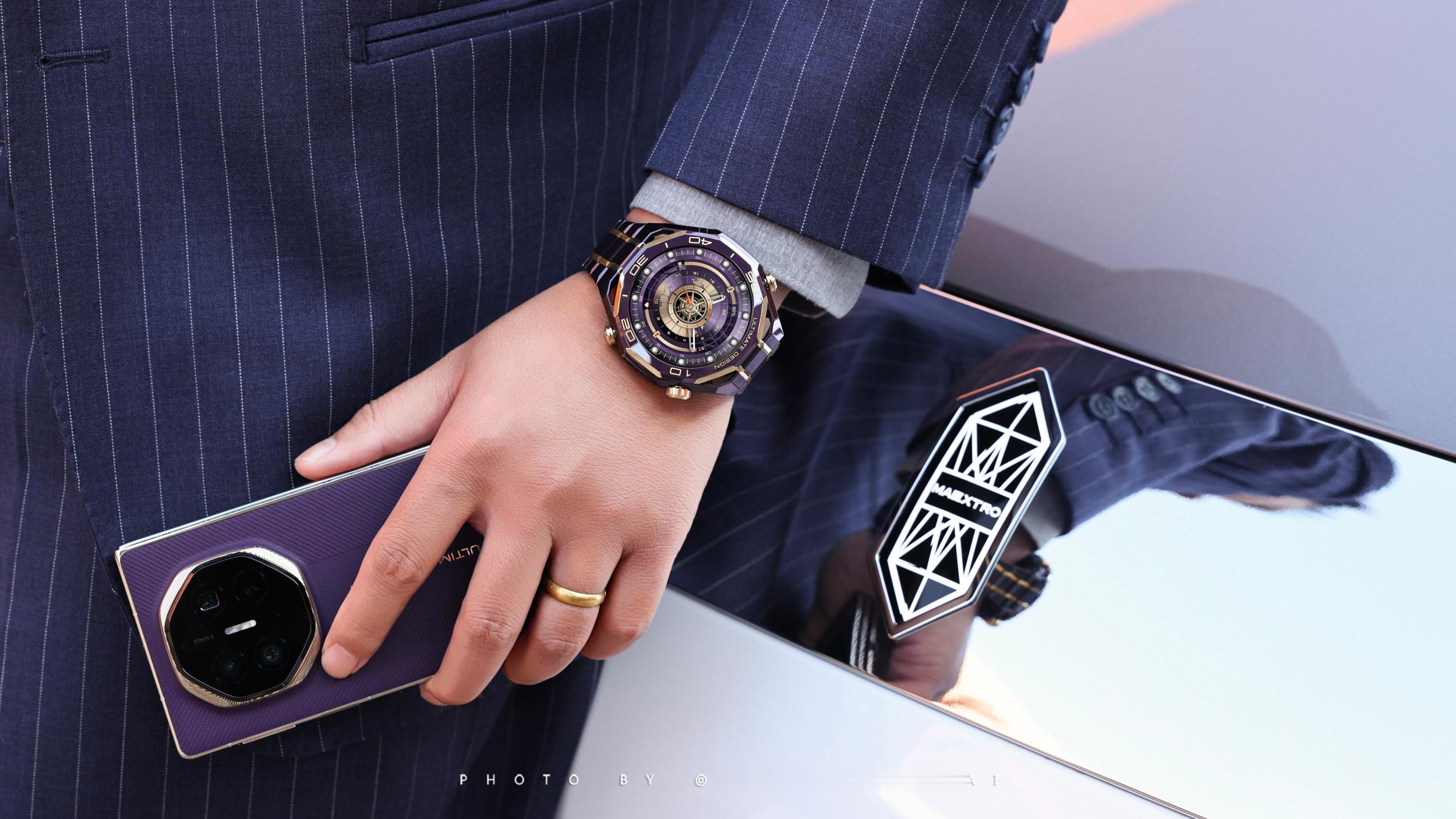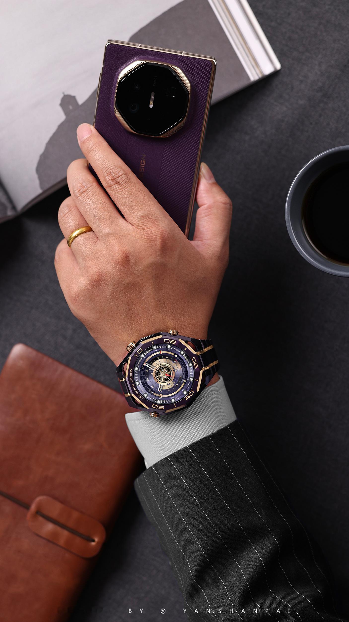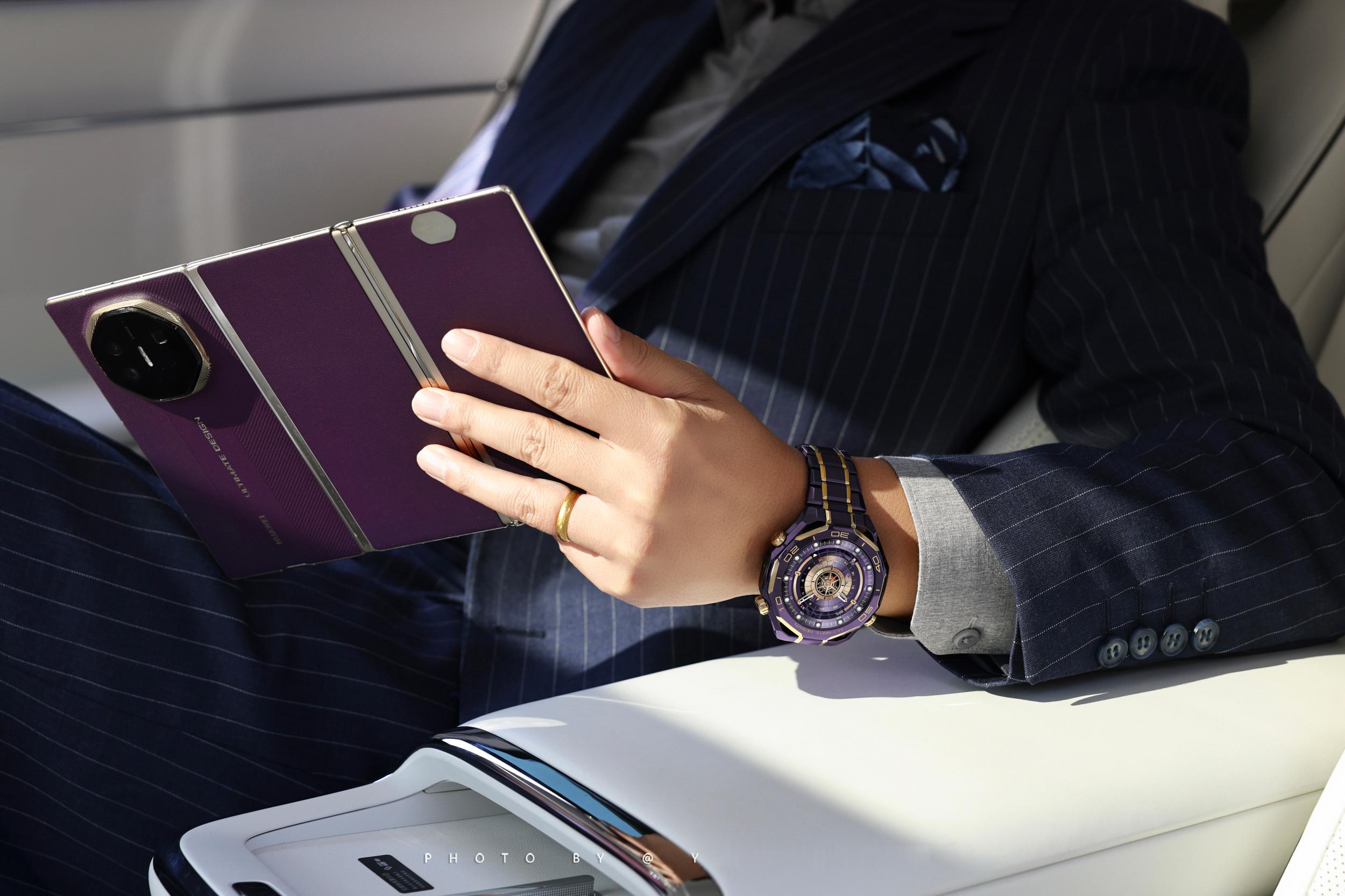 在质感这一块还就得是华为!华为WATCH ULTIMATE DESIGN非凡大师紫金款上新了。从之前的黑金、蓝金到如今的紫金色,华为金表的这种尊贵感一直传承了下来。这一代华为金表的紫金配色非常符合东方审美对于高端和优雅的定义,戴在手腕上就是紫气东来的感觉。紫色的复合稀土陶瓷打造的表圈,6段大师手工镶嵌的轮舵状18K金,成为了首款将彩陶和黄金相结合的高端智能腕表表圈。这种色彩和材质的碰撞再一次刷新了我对高端设计的认知,这种低调奢华的紫金配色,与极致高端工艺相结合,这种感觉我是非常喜欢的,尤其是跟尊界放在一起,这气质无敌了!回头开卖了高低得买一个让我劳力士吃灰~