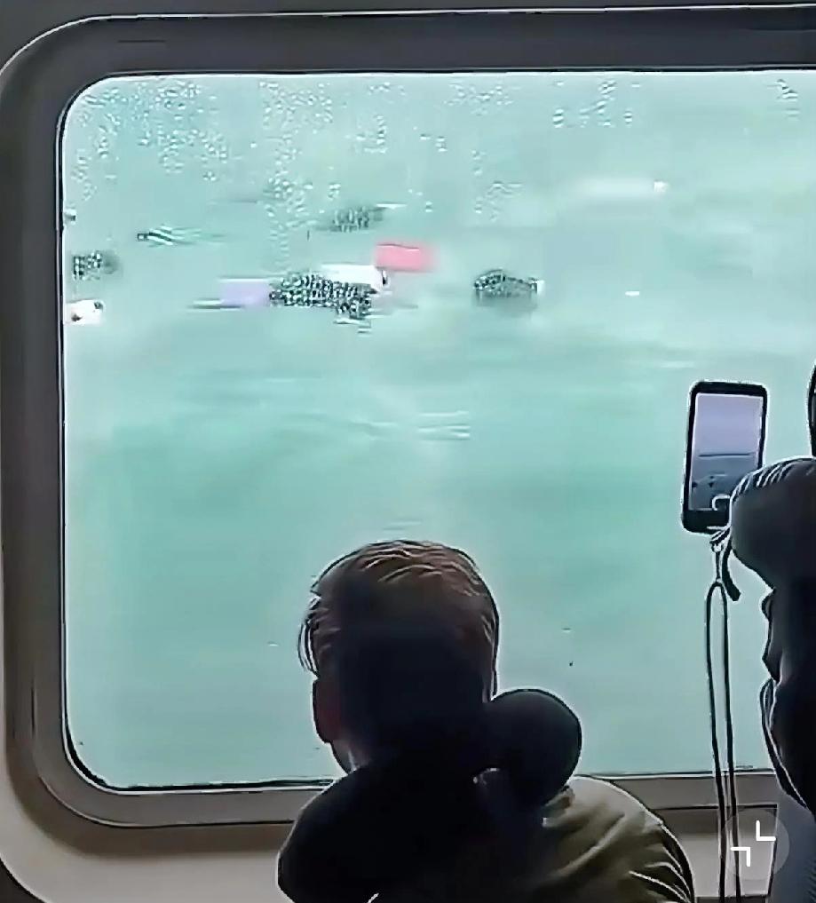 这一幕一般人心理可承受不住! 坐船旅游,突然海上飘过来一堆行李! 可想而知是前面有船遇难了, 更严重的有可能是,自己坐的这艘船已经开始沉没了! 随着船晃悠的越来越厉害, 乘客们心里肯定是慌慌的,心里祈祷自己的船别出事!