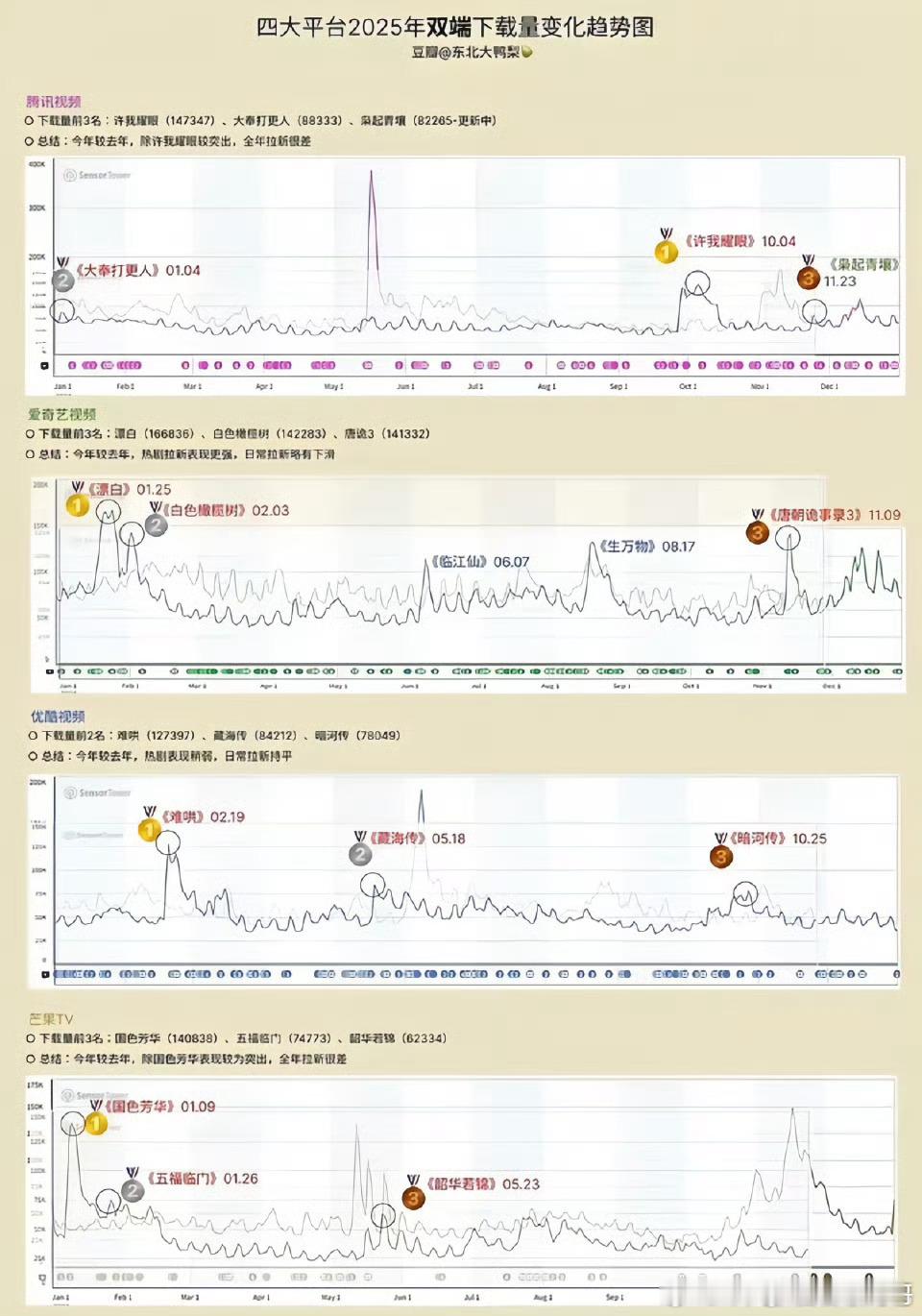 2025四大平台贡献下载量排行TOP3🐧许我耀眼、大奉打更人、枭起青壤🥝漂白、白色橄榄树、唐朝诡事录3👖难哄、藏海传、暗河传🥭国色芳华、五福临门、韶华若锦