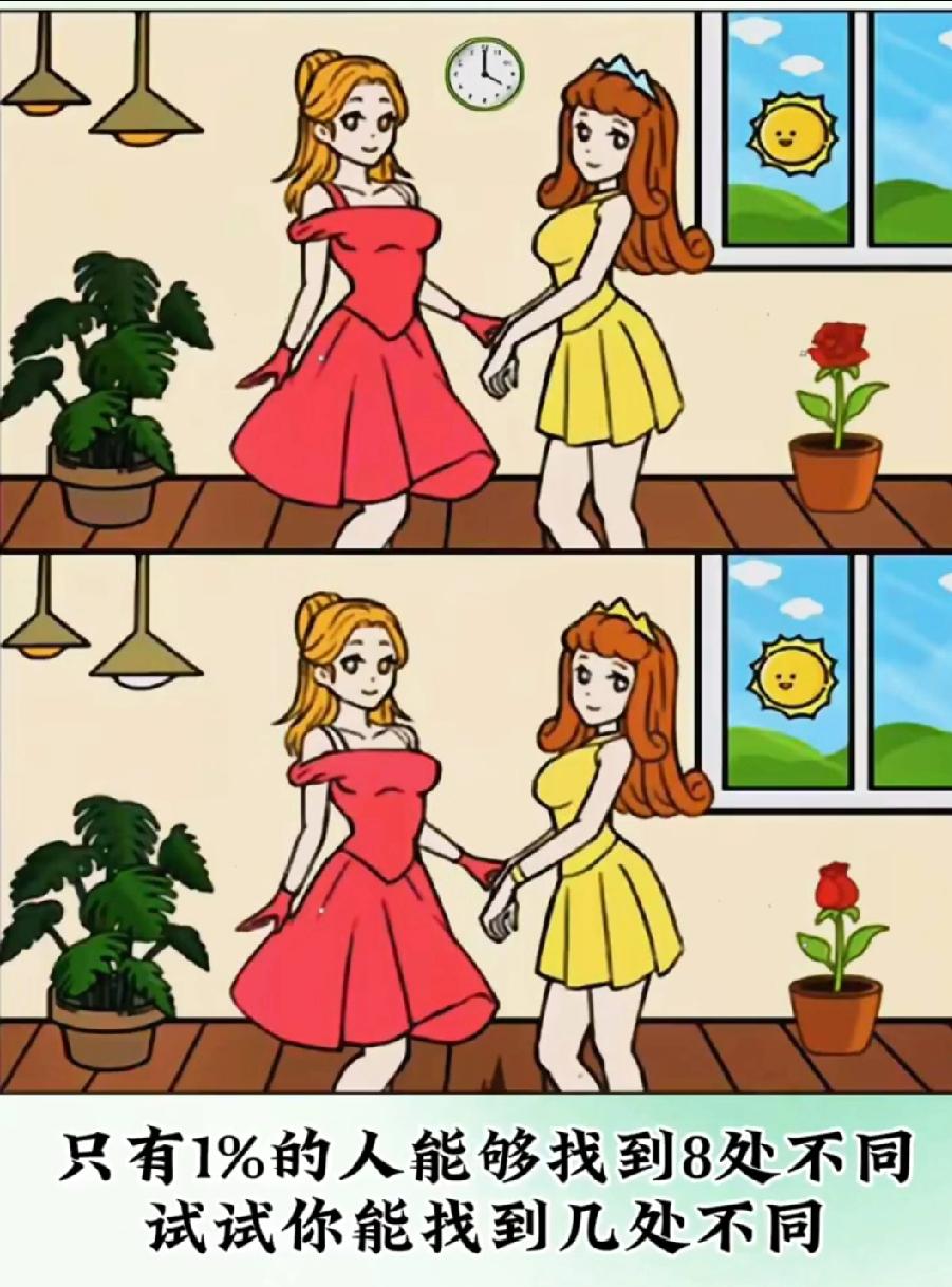 别不信!这图的8处不同藏得比针还细,我盯了5分钟才找3处,评论区有大神吗?