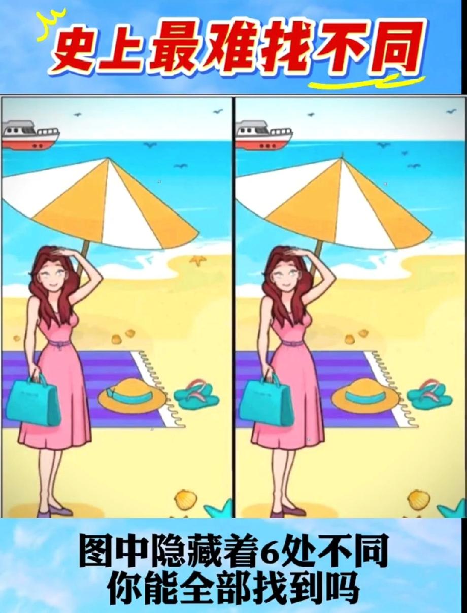 别自信!这海滩图的不同处藏得像沙子里的贝壳,我盯了3分钟才找2处,评论区来挑战!