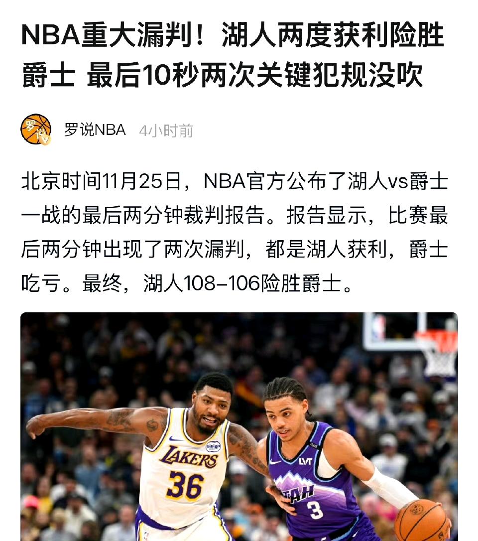 全网都在说昨天湖人爵士一战,湖人最后10秒两次关键犯规没吹。 也许因为湖人是流量球队,稍微一点点风吹草动,它都会遭遇网暴。 裁判不过想将决定权交给球员,最后10秒关键性判罚很容易带偏比赛。 仔细回看这两次犯规,你们觉得该吹吗?一旦吹罚湖人输球,那又是一场网暴,谁又能担得起呢?