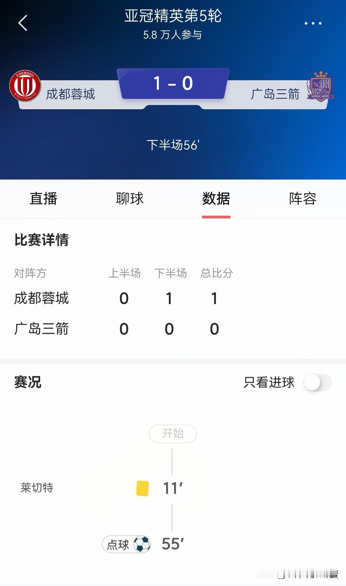 天呐,成都蓉城终于进球了!在今天进行的成都蓉城和广岛三箭的亚冠精英赛第5轮中,当时比赛进行到了第52分钟,成都蓉城队长周定洋在禁区内被对手放倒在地,主裁判果断的判给了成都蓉城一粒点球,在经过VAR确认以后主裁判维持了原判,之后成都蓉城外援费利佩一蹴而就将球打进,成都蓉城取得了1:0的领先。