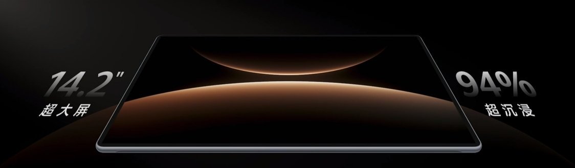 华为 MatePad Edge 二合一平板电脑,采用14.2 英寸大屏,94% 的屏占比,分辨率 3120×2080,1000nits 峰值亮度,P3 广色域。