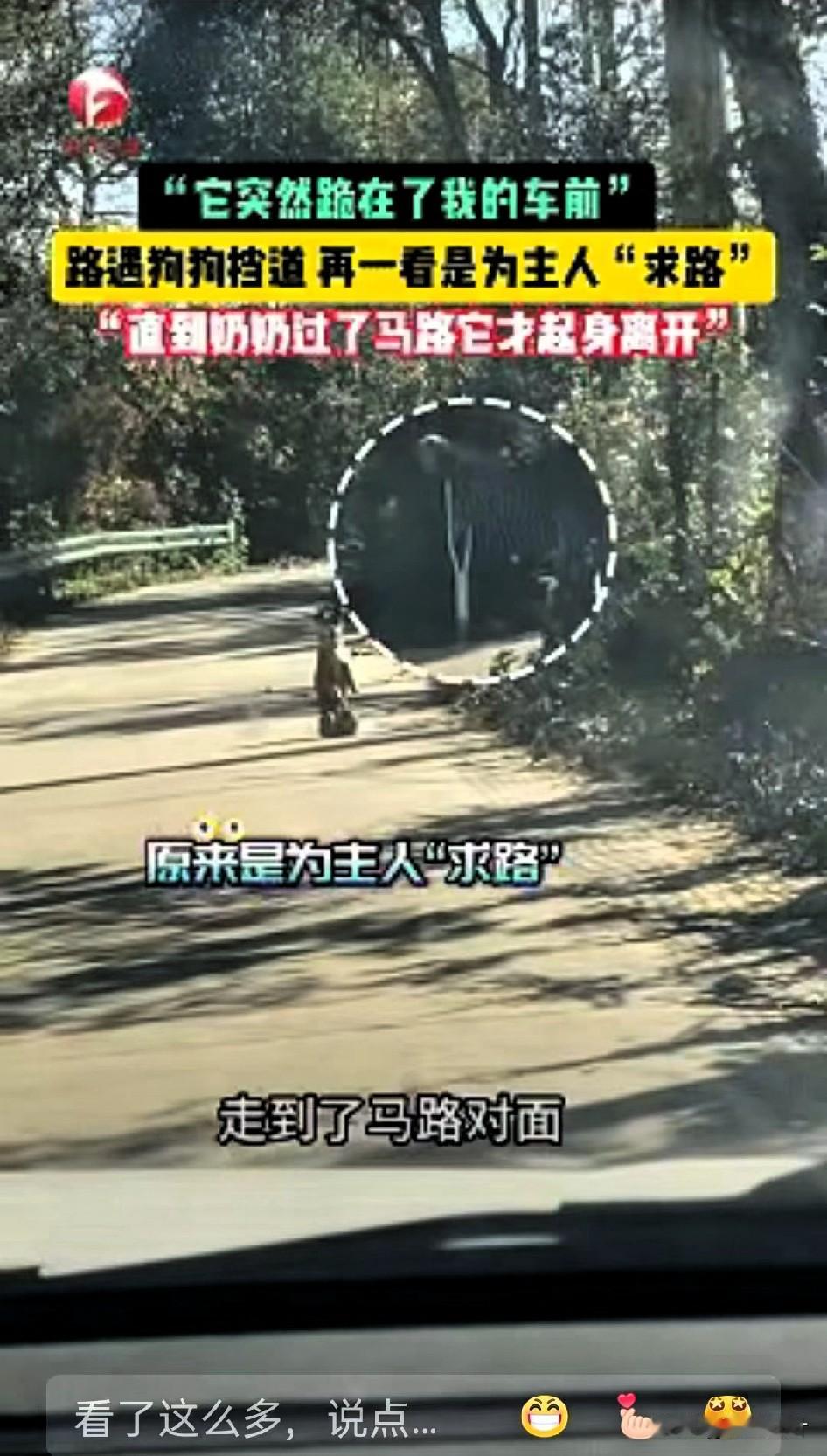 科学也解释不清了!近日安徽广德,女子跟老公开车回家时在路上遇见了一只双腿站立行走的狗 她刚拿出手机想录像,就瞥见狗狗身后的土路上,一位拄着拐杖的老奶奶正颤巍巍地准备横穿马路。直到老奶奶慢悠悠地安全走到路对面,狗狗才摇着尾巴站起身,快步跑到老奶奶身边,亲昵地蹭了蹭她的裤腿,然后一老一少慢悠悠往家走。 原来它不是要故意挡路,而是看出主人行动不便,担心车辆会撞到老奶奶,才用“下跪”这种近乎“哀求”的方式,恳请车主稍等片刻。 没经过任何训练,却能在关键时刻想出这样的办法保护主人,这份刻在骨子里的忠诚,比很多人的“人情世故”都更戳心。 都说“万物皆有灵”,这只狗用最笨拙却最真诚的方式,诠释了什么是“守护”——不掺杂任何功利,只是单纯地想让主人安全。 我们总说狗是人类最好的朋友,可这只狗让我突然懂了,它们对主人的爱,从来都不是“朋友”二字能轻易概括的。那是一种与生俱来的执念,是愿意用自己的一切去守护的纯粹。 有时候真的觉得,动物的真诚和执着,反而比复杂的人心更值得敬畏。它们不会算计,不会背叛,只会用一生去兑现“陪伴”的承诺。你被这只狗狗的举动打动了吗?