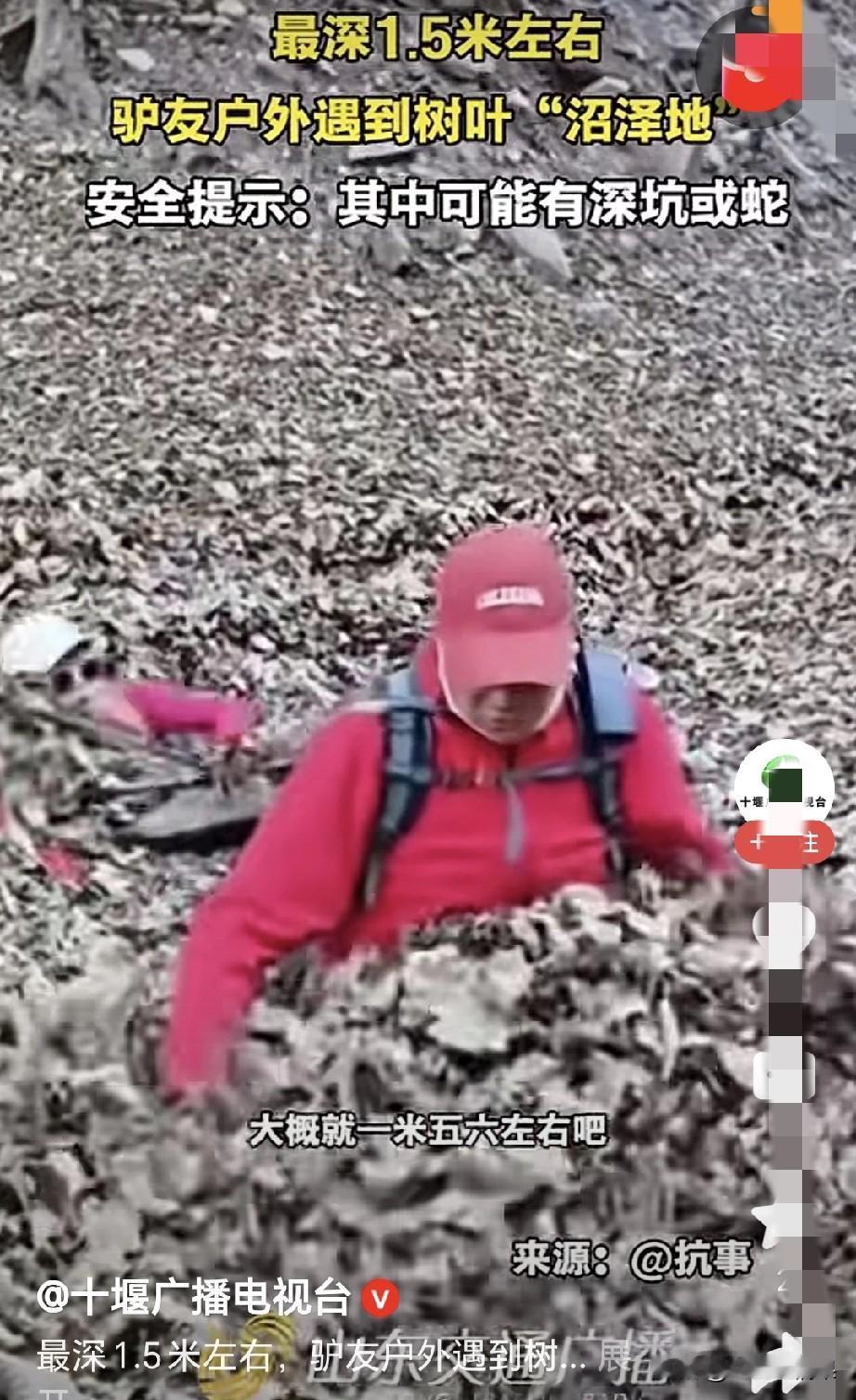 现在玩户外真的是一个比一个牛,这种树叶沼泽直接往里面跳。 你说他们是菜鸟吧!都一大把年纪了,应该有一定的户外经验,直接敢往危险的地方跳。 你说他们是大佬吧!这种有危险的地方,怎么能直接跳下去呢,万一下面有深坑或者洞穴什么的,岂不是直接领盒饭。 看来,古人那句话,淹死的都是会水的,很有道理。