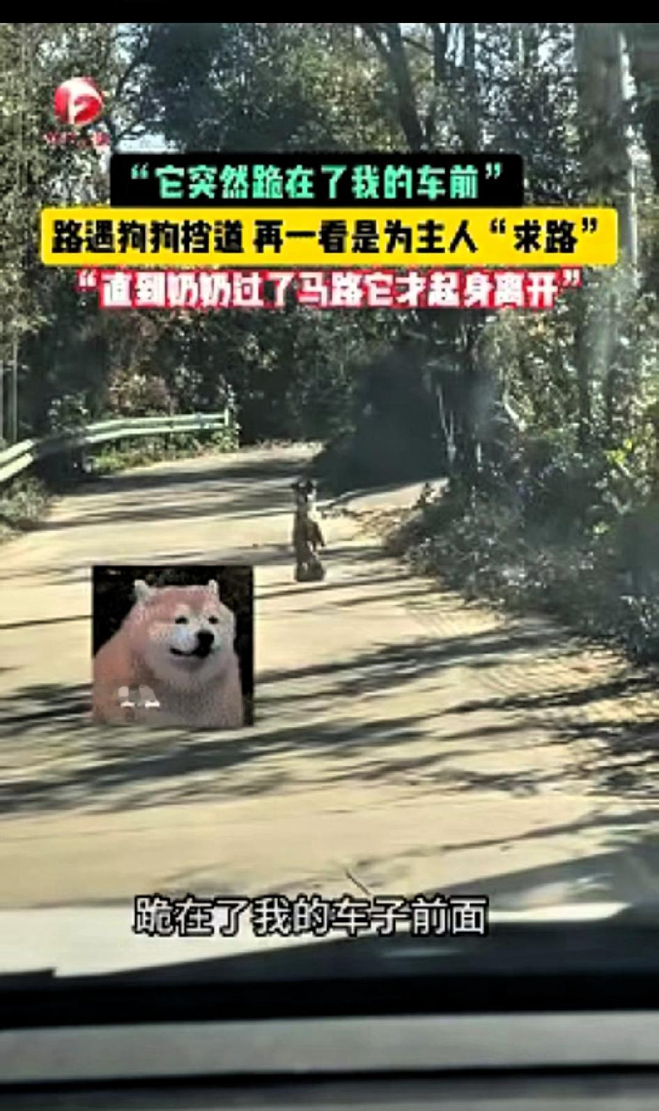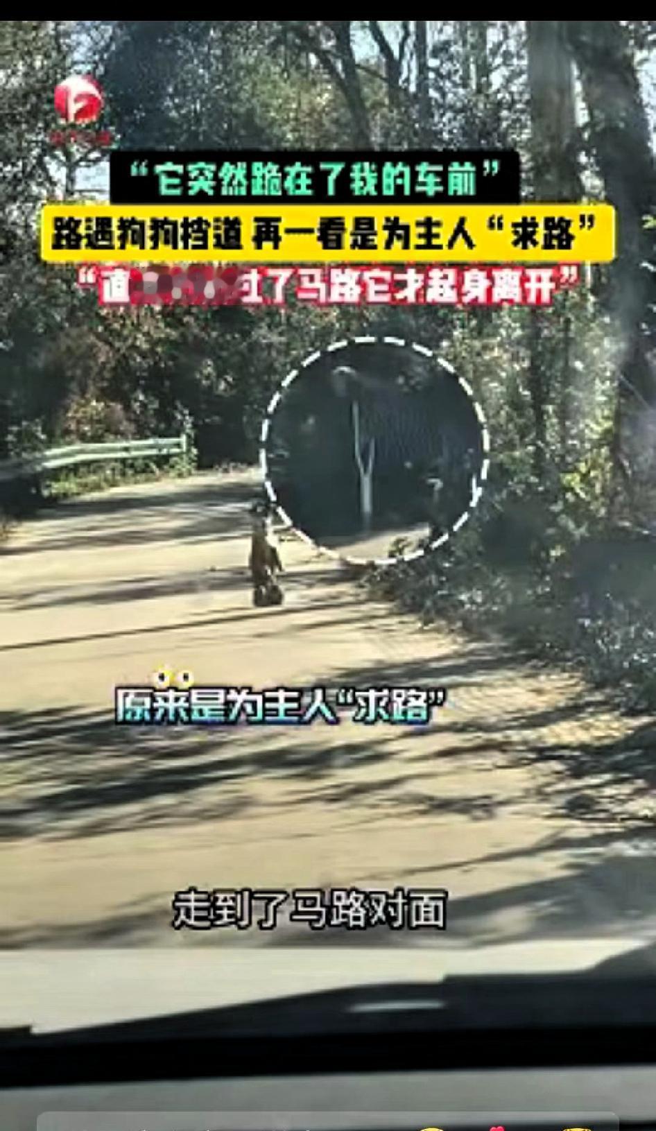 科学也解释不清了!近日安徽广德,女子跟老公开车回家时在路上遇见了一只双腿站立行走的狗,女子刚打开手机要录像 狗狗到车头前跪了下来,这一举动让夫妻俩有些意外,一时不知道该怎么办。这时他们才发现,狗狗身后的土路上,有位拄着拐杖的老奶奶正准备横穿马路。 原来,狗狗是担心车辆会撞到行动不便的主人,才用这种方式提醒车主停车等候。夫妻俩立刻停下车,看着老奶奶慢慢走到路对面。确认主人安全后,狗狗才站起身,跑到老奶奶身边,跟着她一起离开。 这段视频传到网上后,不少网友被狗狗的行为打动。有人说,万物皆有灵,狗狗的忠诚藏在日常的陪伴里;也有人觉得,它虽然不懂复杂的规则,却用最直接的行动守护着主人。 其实,动物的情感往往很纯粹,它们的守护不需要刻意训练,而是源于长期相处的信任与依赖。