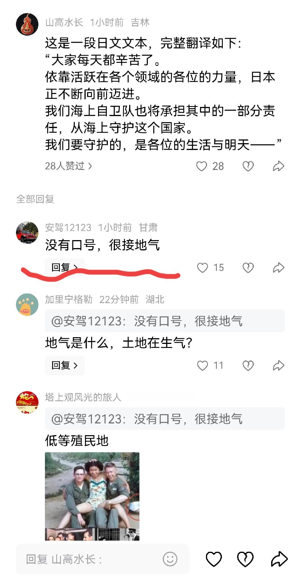 人家都明目张胆地亮出旗帜了,我们国内还有一大波人在给他们洗地,甚至攻击我们的这波太大惊小怪了,小题大做了。国家一边在做赴日旅游警告,另一边的高校教授却希望我们把孩子尽可能送去留学。 这些人,面对这面旗帜会羞愧吗? 不过我估计是不会的,毕竟人家这中日友好教授把自家爷爷称呼为“抗日分子”。 这群人,早已没了是非正义,人间善良,道德底线了。