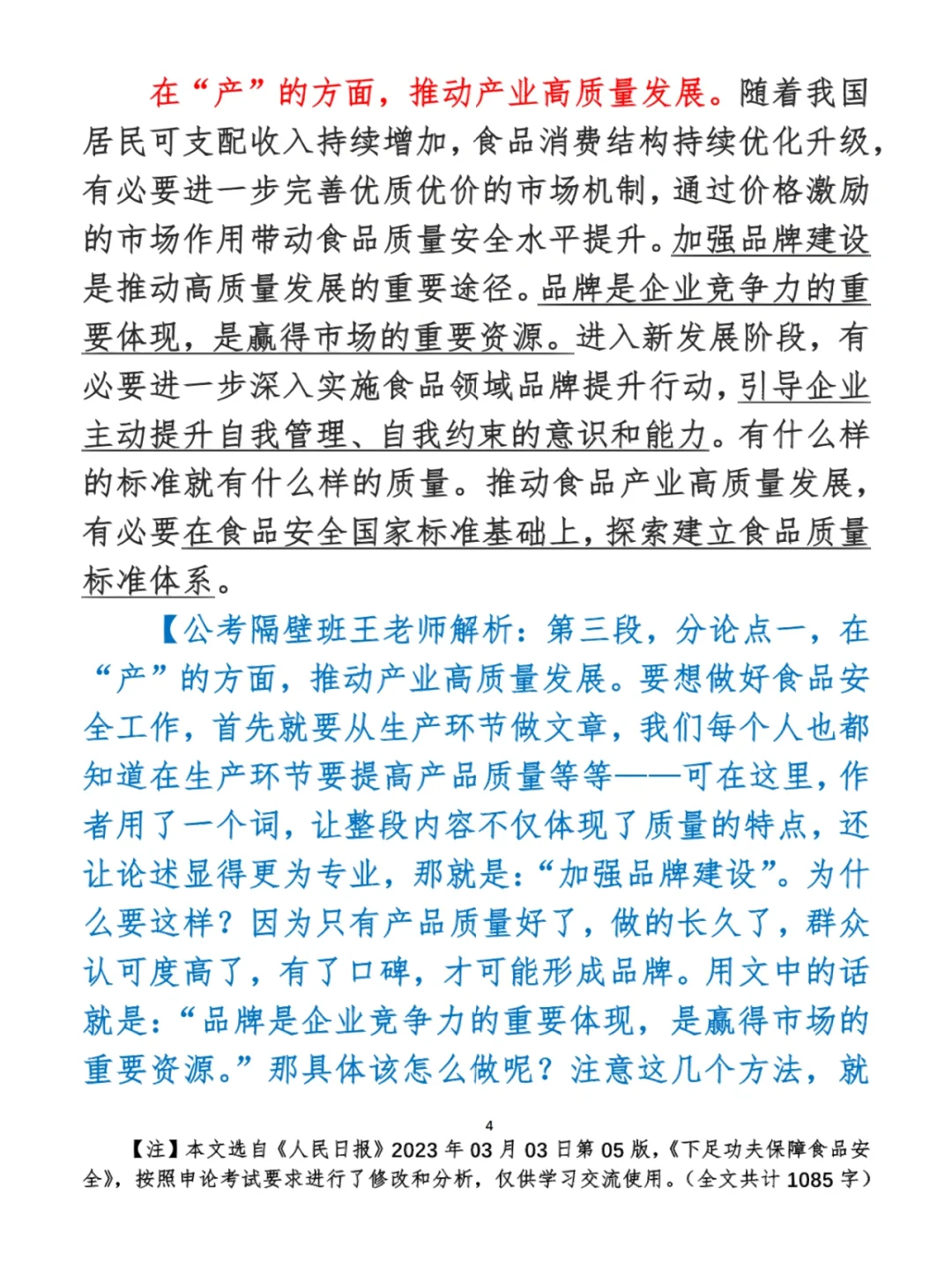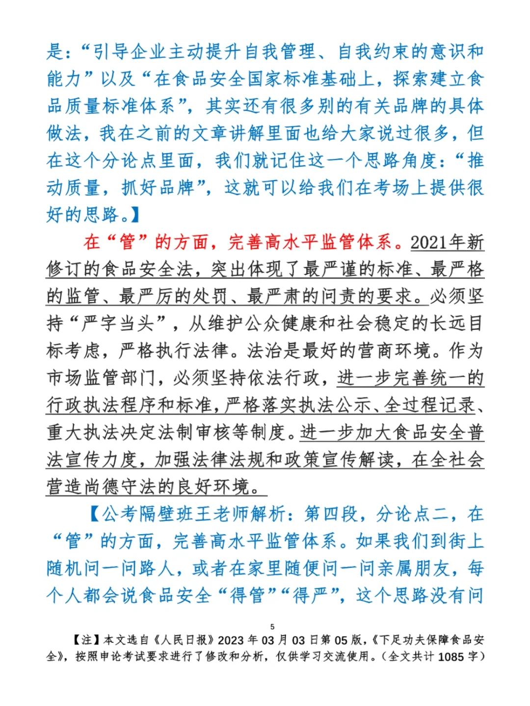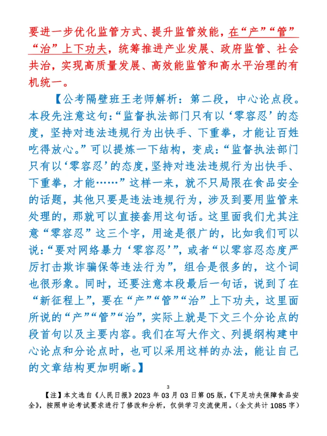 今日打卡作业: 1. 选一句你最喜欢的金句 2. 抄写全文红字+划线部分内容 3. 写完后在留言区打卡 ⭐️ ⭐️ ⭐️ ⭐️ ⭐️ ⭐️ 如何抄写:每天的抄写文章以图片形式发在“公考隔壁班王老师”账号,红色字是重点句和结构句,黑色字是正文,蓝色字是解析,大家抄写时不必抄蓝色字。建议先通读全文(包括蓝色解析部分),做到心中有数再开始抄写,效果会更好。 关于文章:抄写文章来源于人民日报,但每篇文章我都根据申论考试要求进行了修改,主要集中在四个方面:一是重写或修改开头、结尾;二是统一段首句句式结构;三是调整段落字数,使文章结构更均衡;四是简化复杂长难句,使之更具可模仿性。每篇文章修改幅度不同,无论修改多少,都是基于申论考试要求,毫无对人民日报文章品评之意。(此处致敬人民日报) 关于解析:我会在文章每段后面加一段蓝色字的解析,是我自己在抄写时的感悟,篇幅时间有限,不能面面俱到,但求重点突出。如果你有其他感悟,也希望能在评论里分享,我们相互学习、共同进步。 ⭐️ ⭐️ ⭐️ ⭐️ ⭐️ ⭐️ 这里是公考隔壁班王老师独创的“每天半小时・申论80分”抄写团,欢迎加入我们!