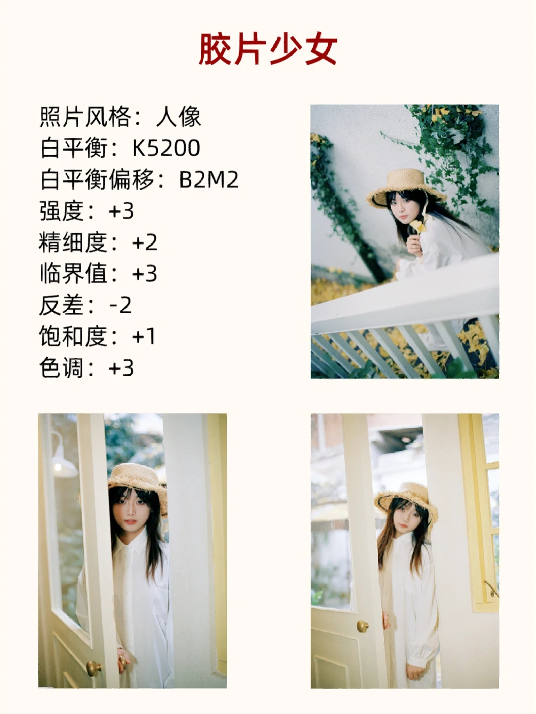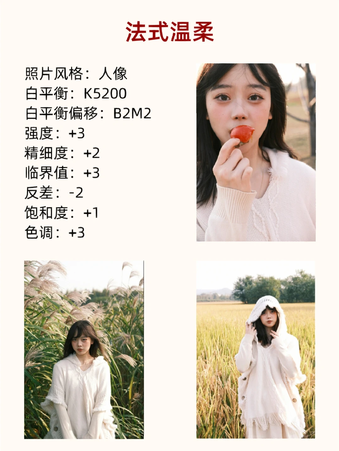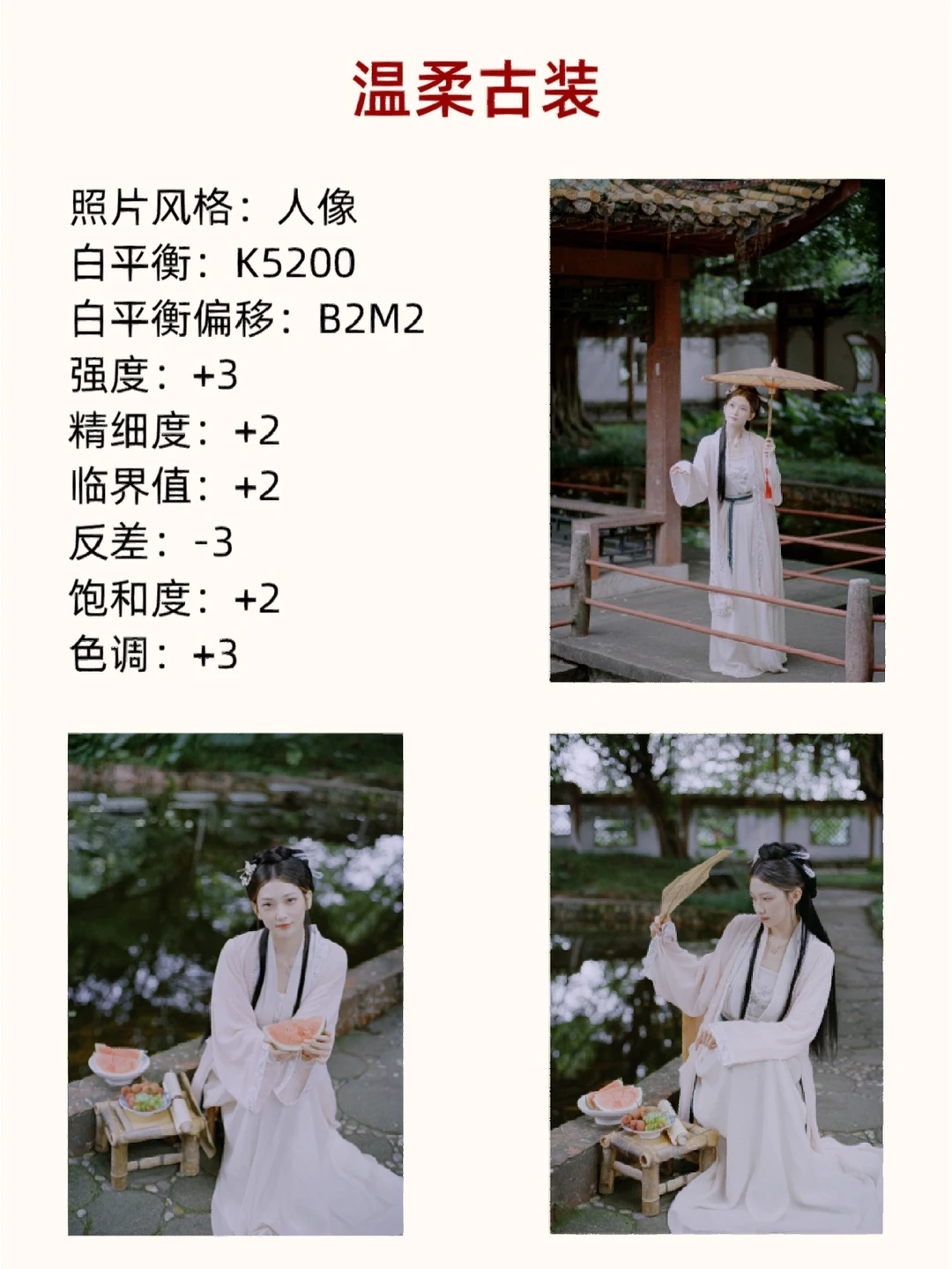 小伙伴们,大家好呀!我是摄影师半夏[害羞R]~ - 经常有小伙伴问我拍人像怎么做到原图直出,还有很多好看的风格应该怎么拍出来,今天半夏就给大家分享几种热门风格参数[飞吻R]. - 喜欢拍人像的新手宝子们,这篇笔记可要好好学啦,认真做好笔记. - [星R]注意哦,在不一样的环境下拍摄效果是不一样的,要根据实际情况调整参数噢[偷笑R]. - 具体的干货内容都放在图片里啦,宝子们快去看看吧,喜欢记得[红色心形R]➕[星R]哦,爱你们呀[派对R]. -