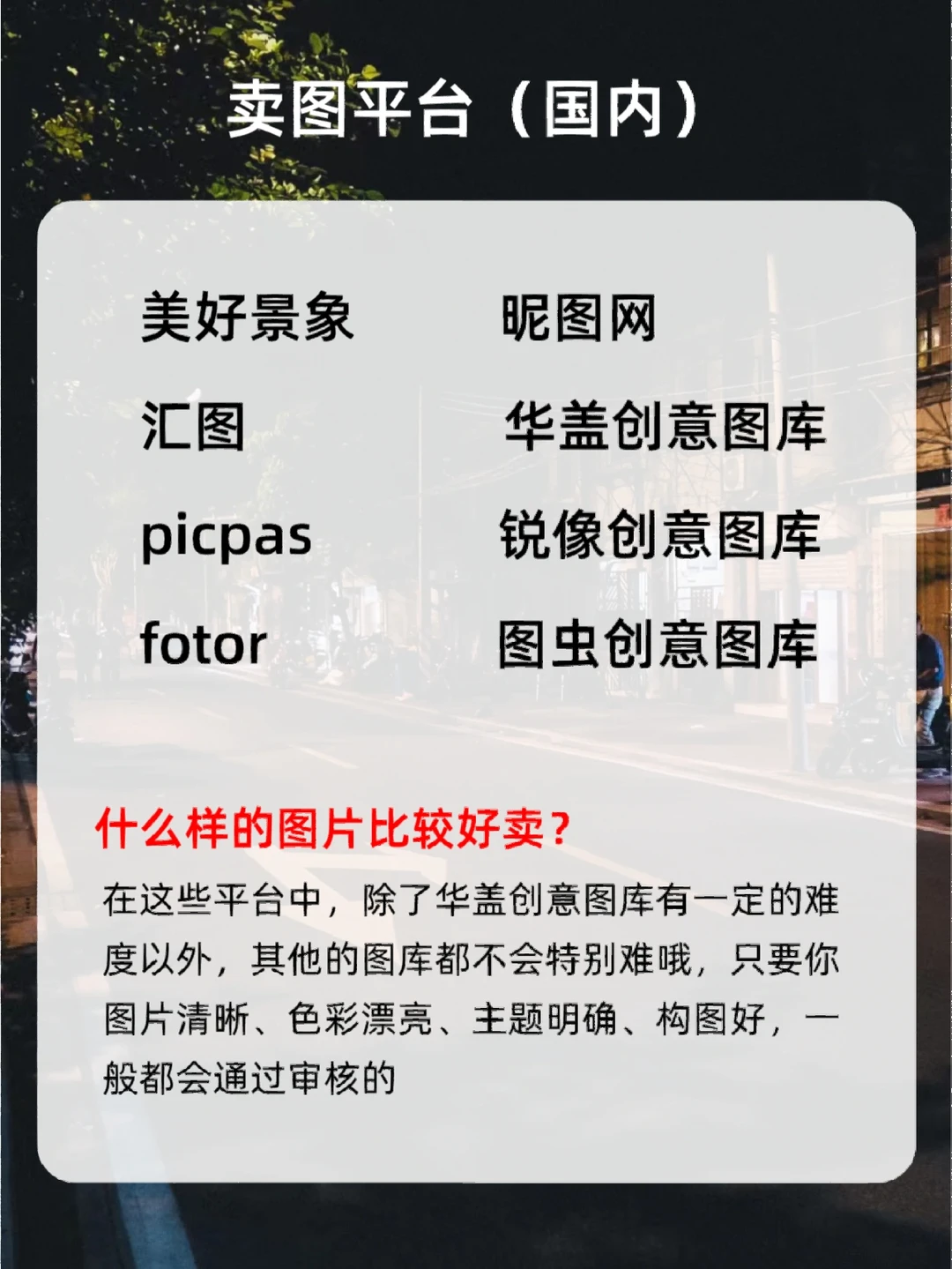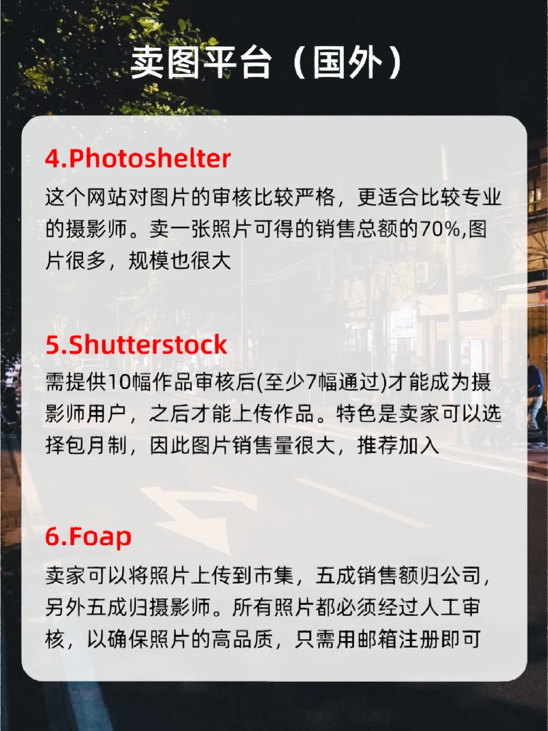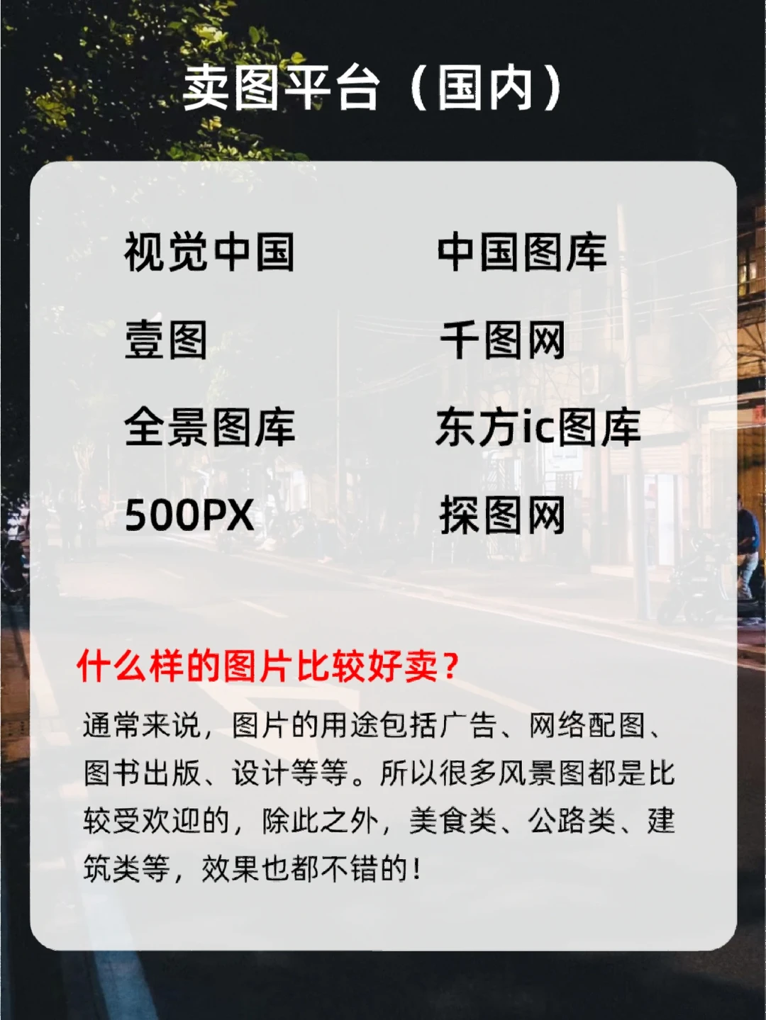 嗨~热爱摄影的小伙伴们[飞吻R] 我猜你们一定不知道相册里的照片还可以卖💰吧 - 今天我给大家分享这篇笔记,小伙们看到就是赚到哦[派对R] - 图片里我介绍了不同平台的优势,我们只需要把图片挂上去,然后就可以轻轻松松收米啦[哇R] - 我经常会在这里给大家分享摄影知识哦,喜欢的小伙伴记得[红色心形R]和[星R]呀,爱你们喲[飞吻R]