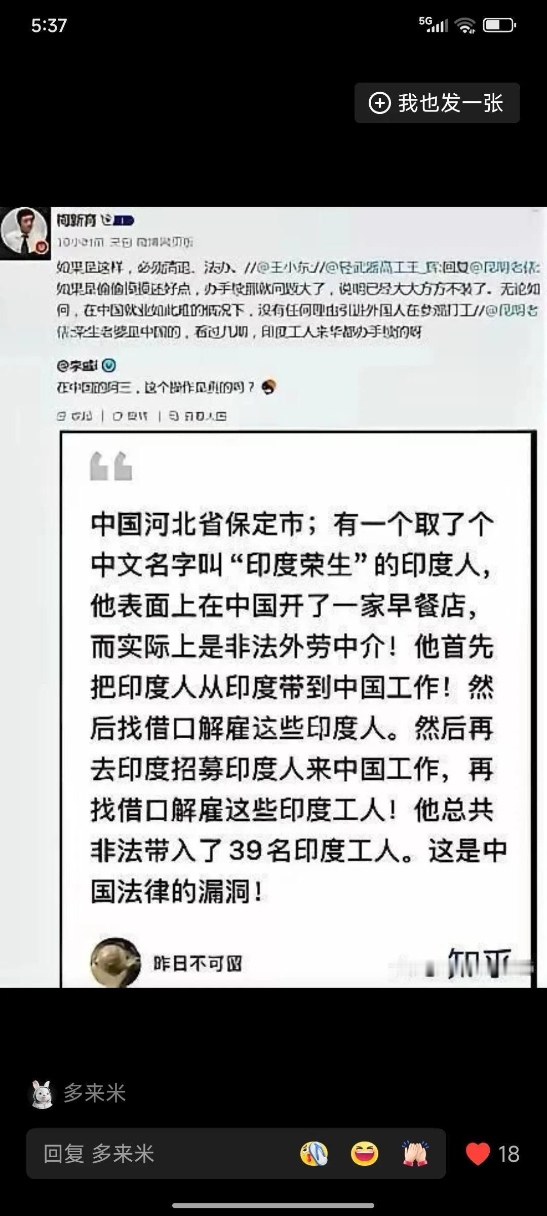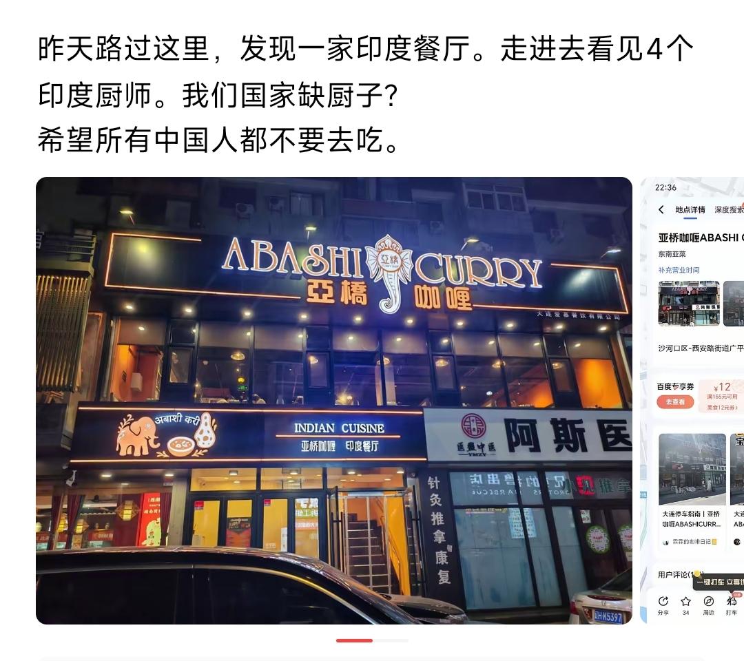 网友看到一家印度餐厅十分可疑!门面装潢还行,但里面居然有4个印度厨师。 有网友建议,举报食品卫生问题,说印度人那双手,实在不敢尝试他们做的食物。 但其实重点不在这儿,重点是——4个厨师。 印度人来开餐厅的目的,很多时候是为了把亲戚朋友搞来中国。有个叫印度荣生的,就曾经把39个印度人非法弄进来。 还有些餐厅根本就是黑中介,挣的是人头费,三哥过来打工,每个月都要把收入的20%交给上家,这在美国都已经成惯例了。 遇到这种情况,请立即举报非 法移 民,一查一个准。