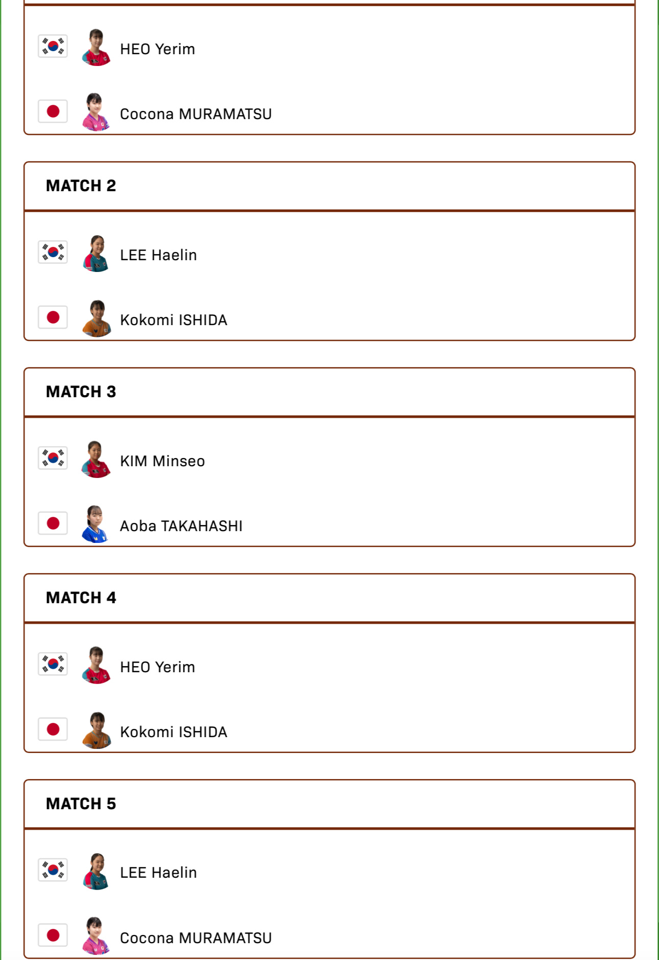 2025世青赛U15女团决赛韩国VS日本许玴玪VS村松心菜李海林VS石田心美金明秀VS高桥青叶许玴玪VS石田心美李海林VS村松心菜